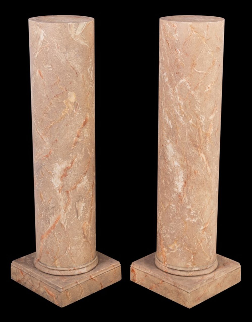 Trompe l'Oeil Marble Painted Wood Pedestals, Pair