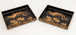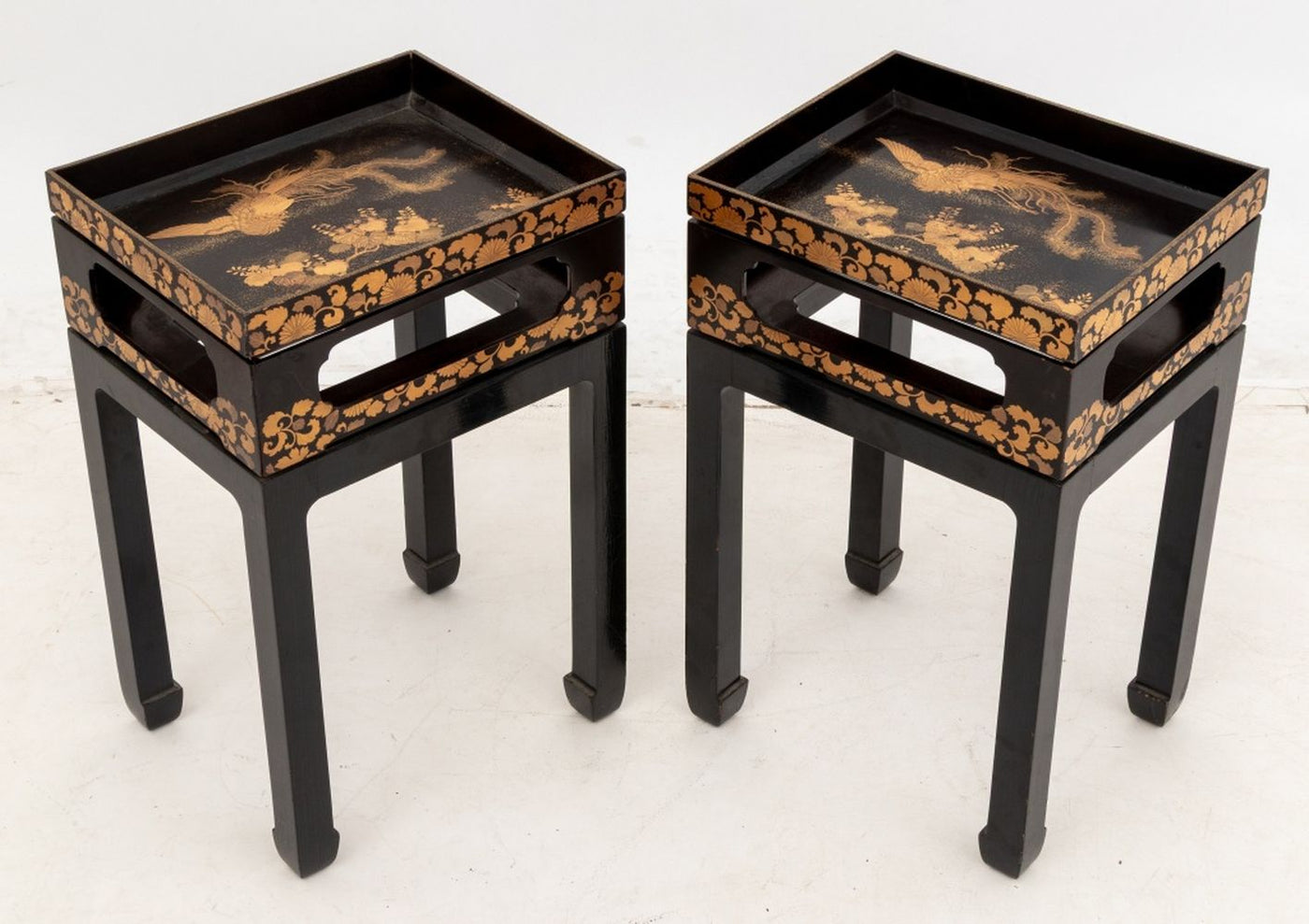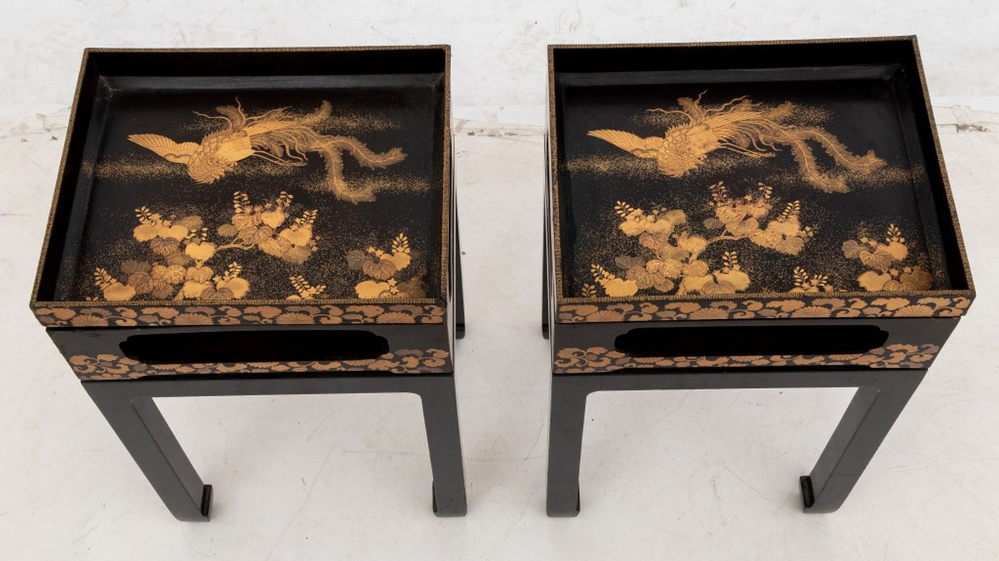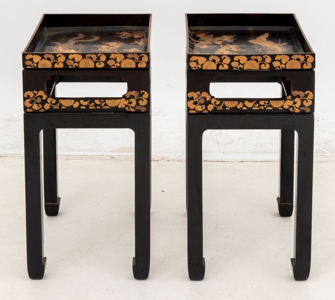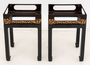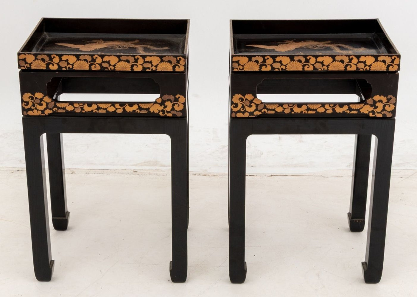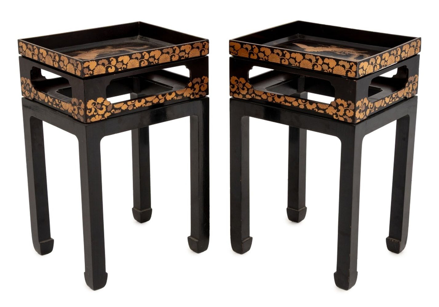 Japanese Gilt & Lacquer Tray Top Side Tables, Pair