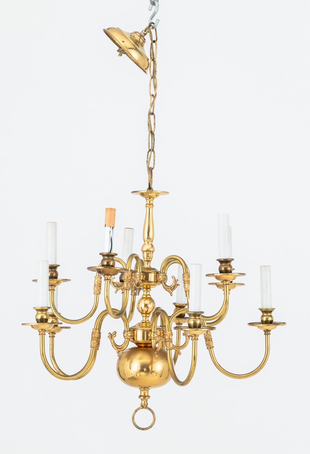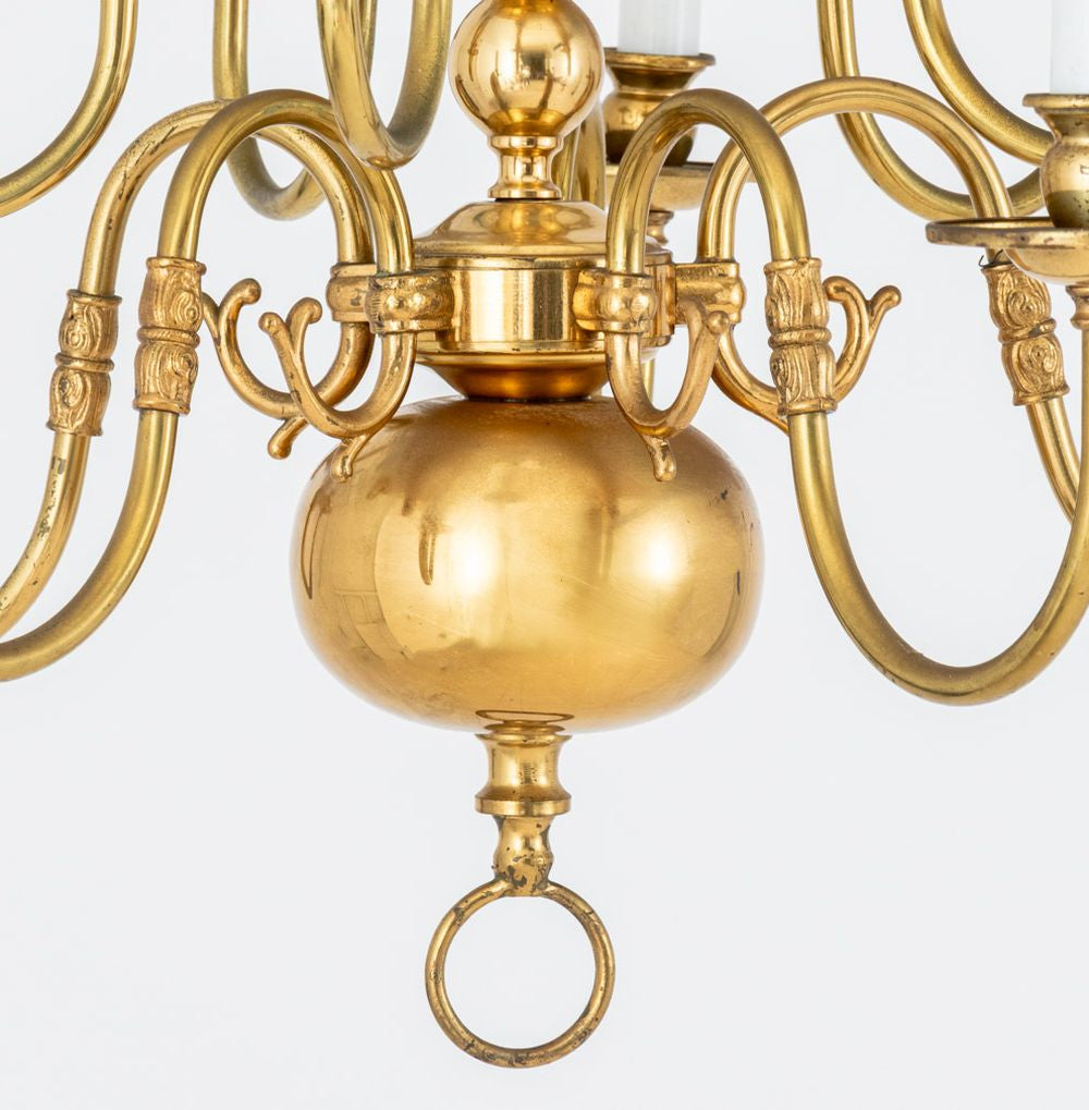 Dutch Baroque Style 10-Arm Gilt Brass Chandelier