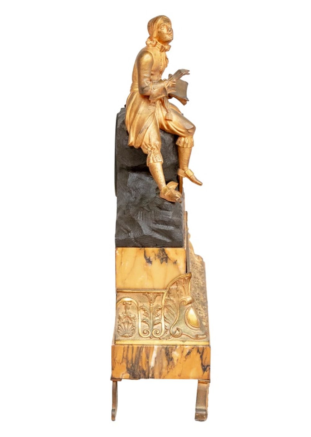 Charles X Gilt Bronze Yellow Marble Figural Clock