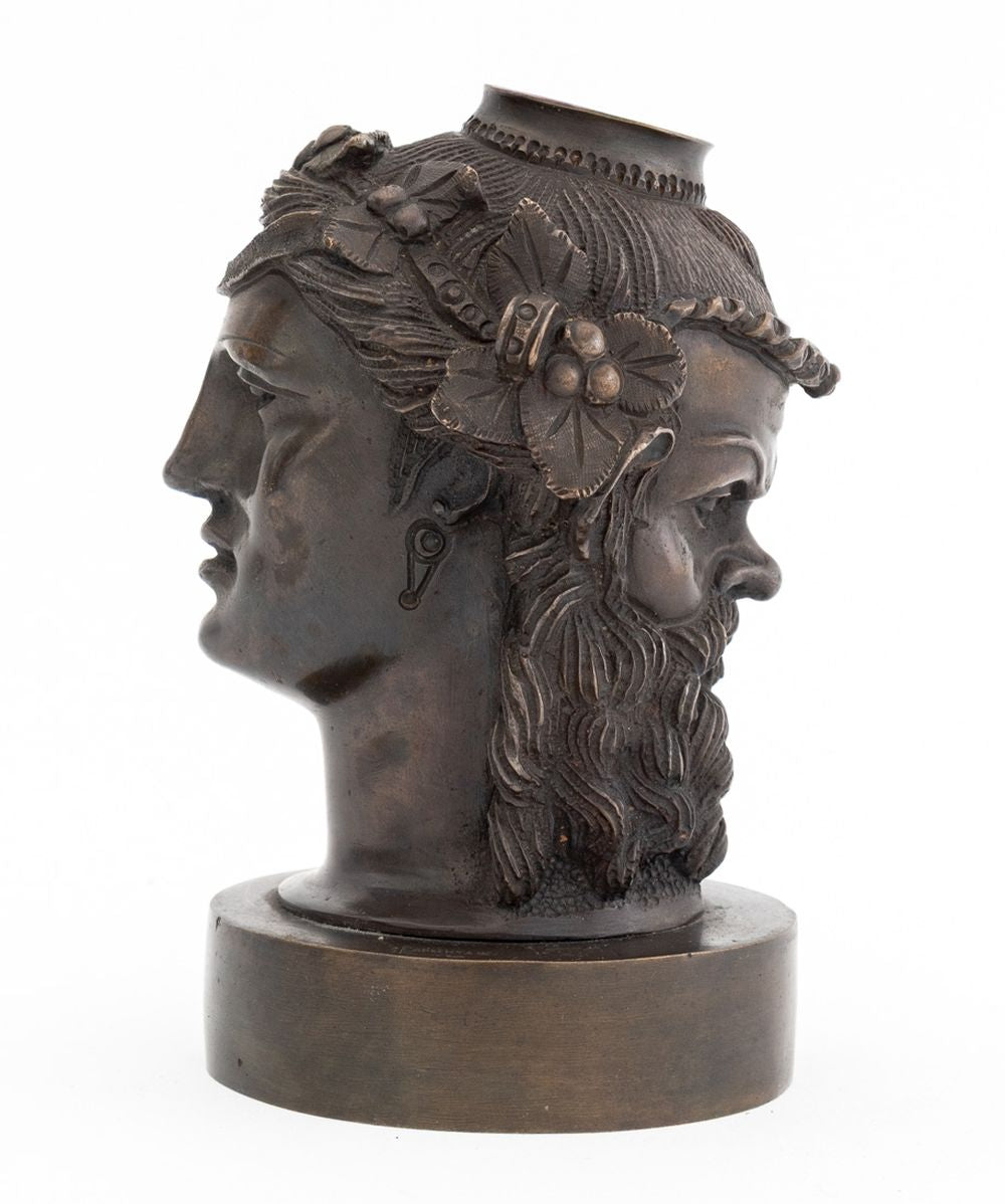 After the Antique Etruscan Two-Faced Bronze Vessel