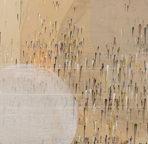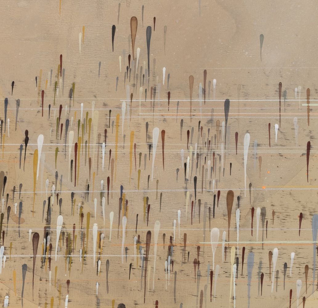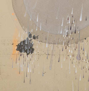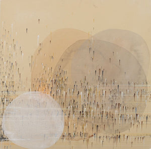 Abstract Composition Diptych, Mixed Media on Paper, laid on board, overlapping transparent circles with a flock of teardrops, apparently unsigned, unframed. Panel: 24" H x 24" W. Provenance: From a Brooklyn Composition. Keywords: Painting, Works on Panel, Gouache, Watercolor, Watercolour, Abstraction, 20th Century School, Post-War and Contemporary Art