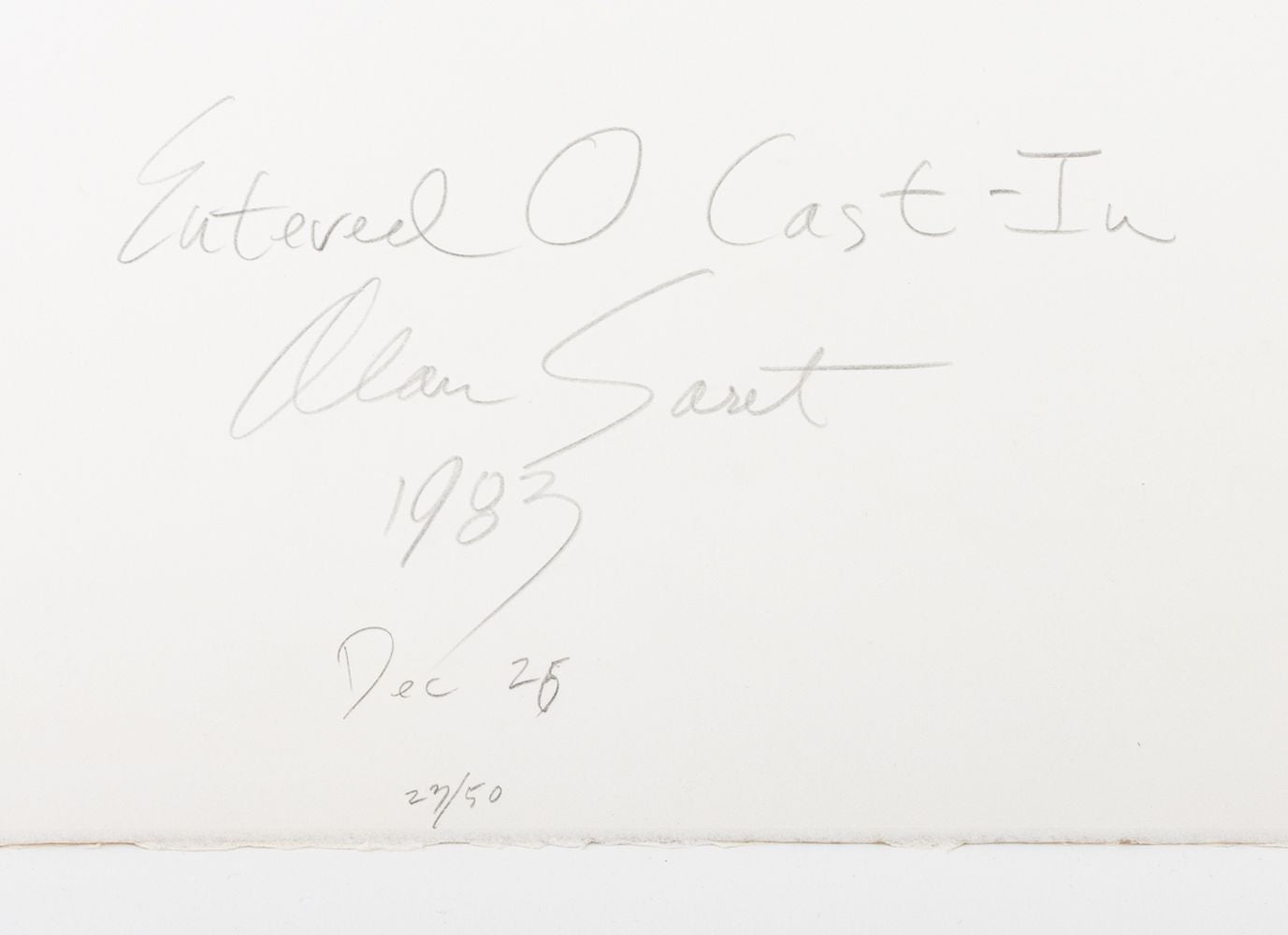 Alan Saret (American, b. 1944), "Entered O Cast-In", Graphite on Paper, 1983, signed, titled, dated, and numbered "23/50" to the verso, ebonized wood frame. Image: 22" H x 29.75" W; frame: 24" H x 31.75" W x 0.75" D. Provenance: From a Central Park West Collection. Keywords: Drawing, Works on Paper, Abstract, Abstraction, Monochromatic, New York School, New York Art scene, SoHo, Postminimalism, American Artist, 20th Century Art, Contemporary Art