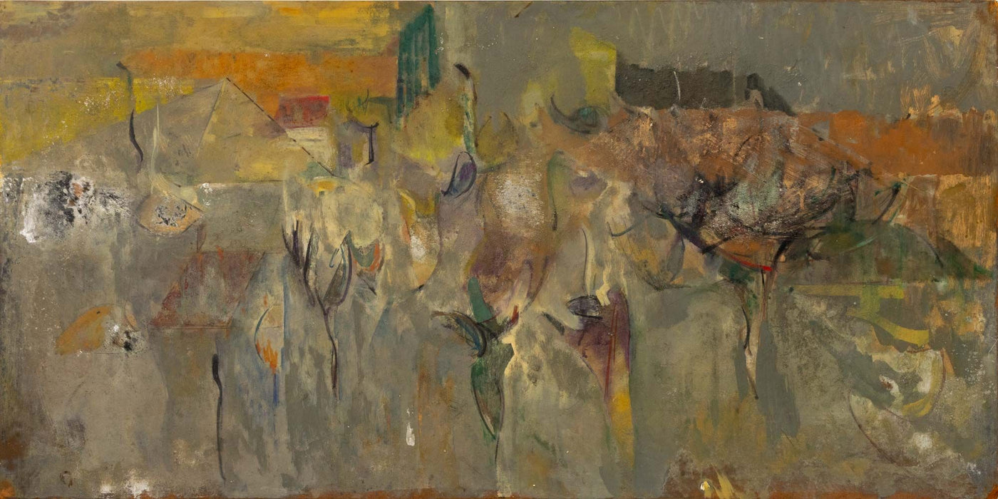 Keywords: Painting, Oil painting, Works on Panel, Abstraction, Abstract, Expressionism, AbEx, Figural, Landscape, Dreamscape, Miroesque, Polychrome, 20th Century Art