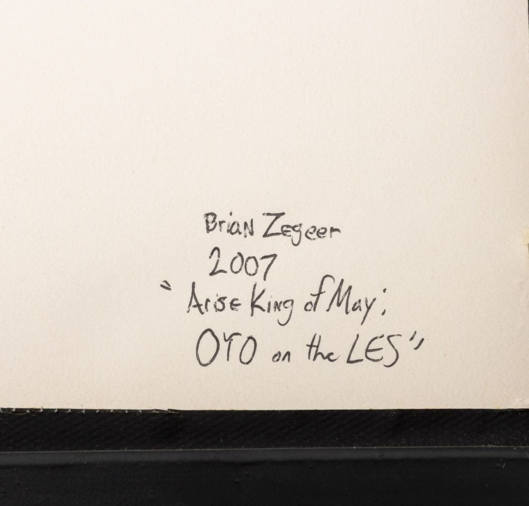 Brian Zegeer (American, XX-XXI), "Arise King of May: OTO on the LES", Mixed Media on Paper, 2007, signed dated, and titled verso, black frame.