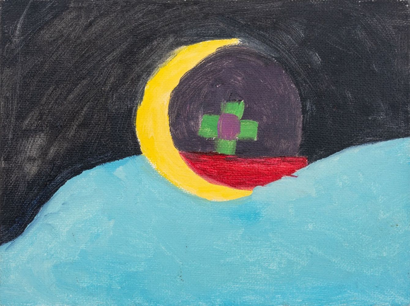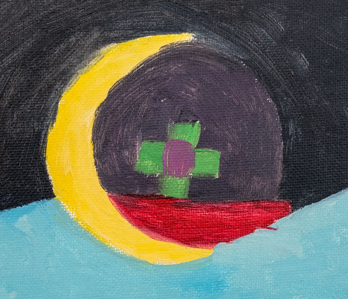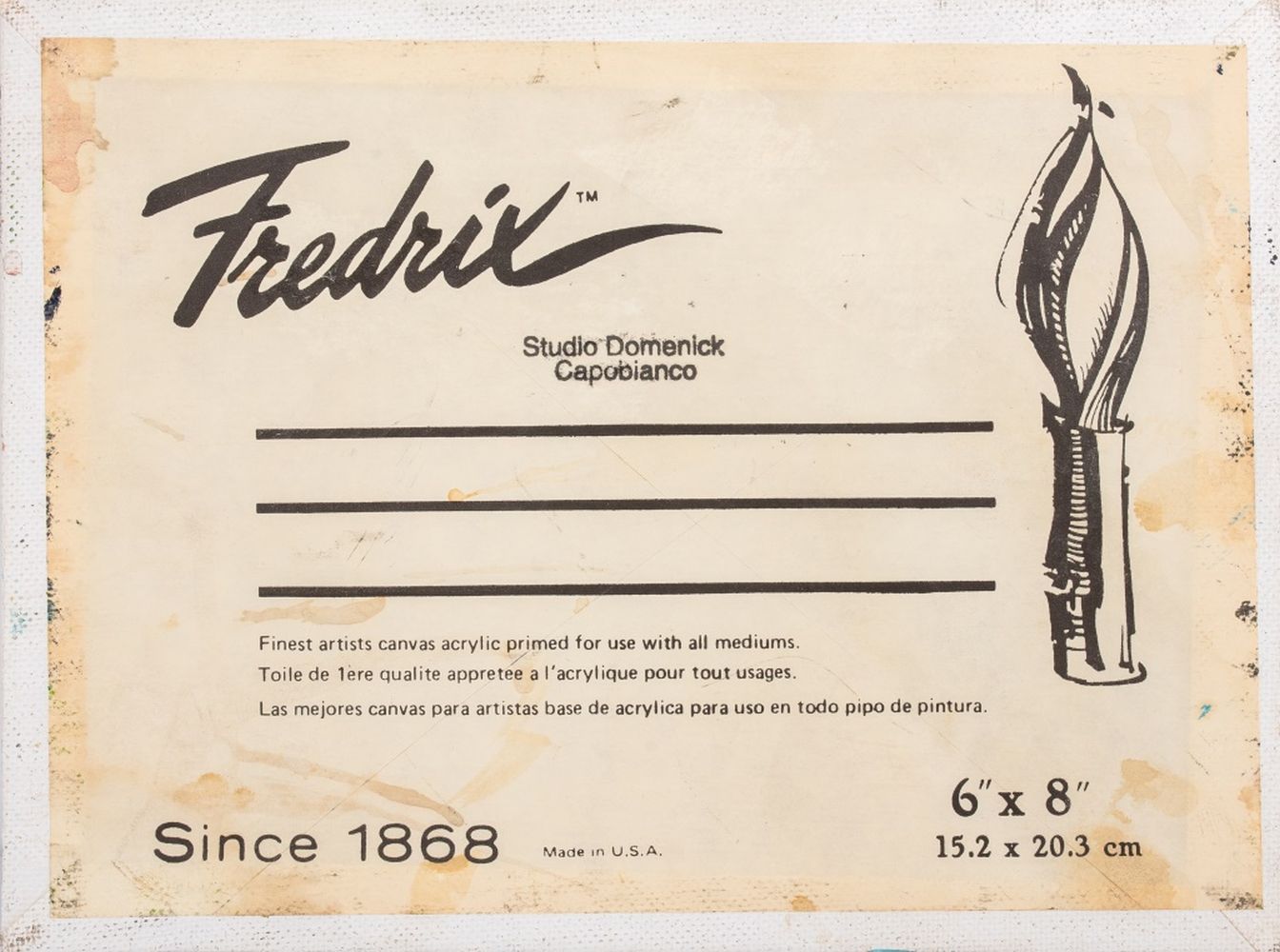 Domenick Capobianco (American, b. 1928), Abstract Composition, Acrylic on Canvas Board, apparently unsigned, "Studio Domenick Capobianco" stamp to verso, unframed. 6" H x 8" W. Provenance: Property from the collection of the artist. Note: Domenick Capobianco is a graduate of Washington University at St. Louis, a Rutgers Fellow (1979), and a Guggenheim Fellow (1984/85). He was an educator and mentor at Rutgers University. Capobianco's work can be found in collections worldwide, including: The Academie des Beaux-Arts, Ljubljana, Slovenia, The Albertina Museum, Vienna, Austria, and The M.V. Nesterov Museum, Ufa, Russia. Alongside his wife, artist Elfi Schuselka (Austrian, b. 1940), he frequently exhibited with the famed 55 Mercer Gallery in New York. Keywords: Painting, Works on Panel, Abstraction, Night landscape, Crescent Moon, Polychrome, Second New York School, Post-War and Contemporary Art