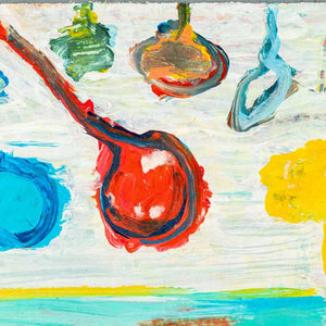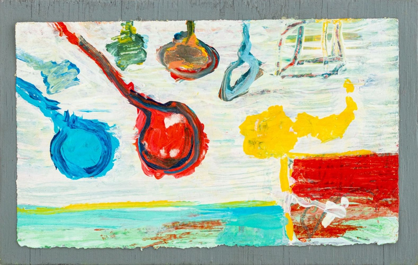 Elfi Schuselka (Austrian, b. 1940), Abstract Composition, Acrylic on Paper, mounted on board, stamped "Studio Elfi Schuselka" to verso, unframed. Image: 4.5" H x 7.5" W; board: 5.25" H x 8.25" W x 0.5" D. Provenance: From the collection of the artist. Note: Schuselka studied photography, art history, and theater at the University of Vienna. She moved to New York in 1964. Her work has been exhibited internationally in the United States, Italy, France, and Japan, as well as at the Cracovia Biennial, Yugoslavia, Ibiza Biennial, Spain, and the Sao Paulo Biennial. Her work is part of the permanent collections of the Museum of Modern Art (MoMA), New York, the Amon Carter Museum of American Art, Fort Worth, and the International Centre of Graphic Arts, Slovenia. Long a regular exhibitor at the famed 55 Mercer Gallery, Schuselka is well-known in New York art circles together with her husband, Domenick Capobianco (American, b. 1928). Keywords: Painting, Works on Canvas, Three dimensional, Target, Balloons, Abstraction, Second New York School, Polychrome, Geometric, Abstract Expressionist, Expressionism, AbEx, Women Artists, Contemporary Art