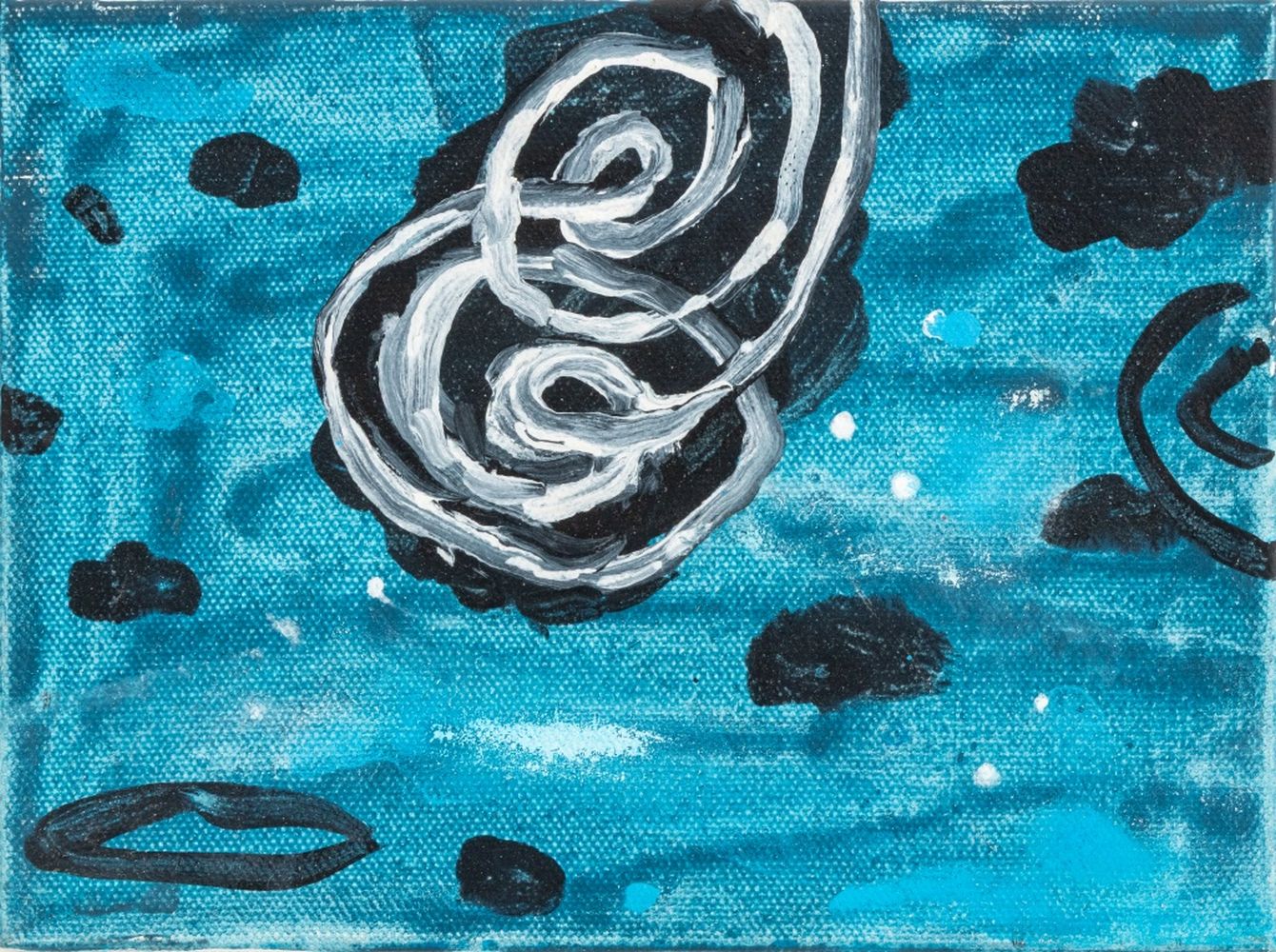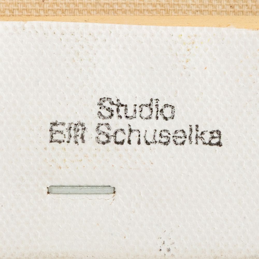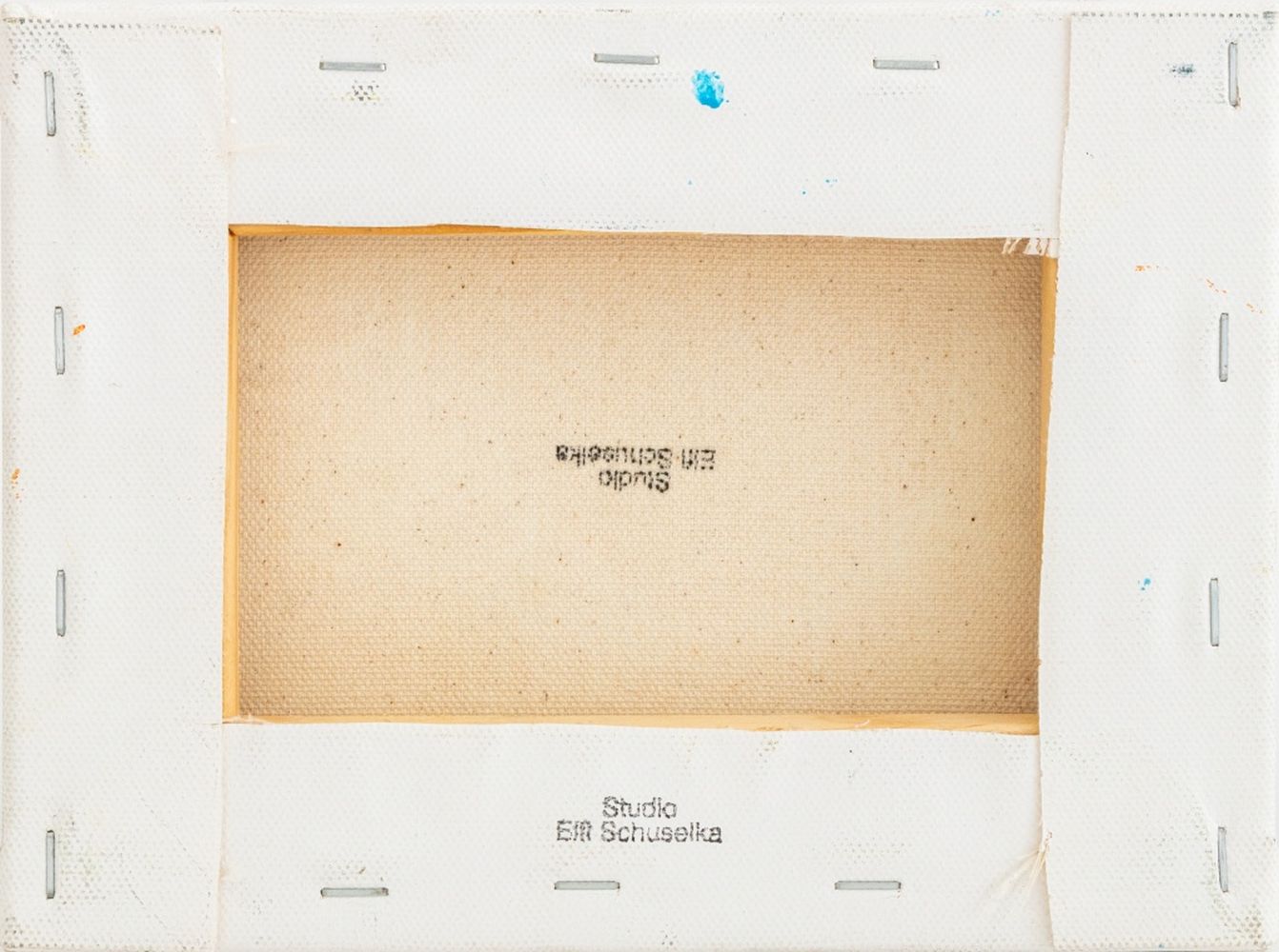 Elfi Schuselka (Austrian, b. 1940), Abstract Composition, Mixed Media on Canvas, stamped "Studio Elfi Schuselka" to verso, unframed. 6" H x 8" W x 0.75" D. Provenance: From the collection of the artist. Note: Schuselka studied photography, art history, and theater at the University of Vienna. She moved to New York in 1964. Her work has been exhibited internationally in the United States, Italy, France, and Japan, as well as at the Cracovia Biennial, Yugoslavia, Ibiza Biennial, Spain, and the Sao Paulo Biennial. Her work is part of the permanent collections of the Museum of Modern Art (MoMA), New York, the Amon Carter Museum of American Art, Fort Worth, and the International Centre of Graphic Arts, Slovenia. Long a regular exhibitor at the famed 55 Mercer Gallery, Schuselka is well-known in New York art circles together with her husband, Domenick Capobianco (American, b. 1928). Keywords: Painting, Works on Canvas, Swirl, Organic forms, Abstraction, Second New York School, Polychrome, Geometric, Abstract Expressionist, Expressionism, AbEx, Women Artists, Contemporary Art