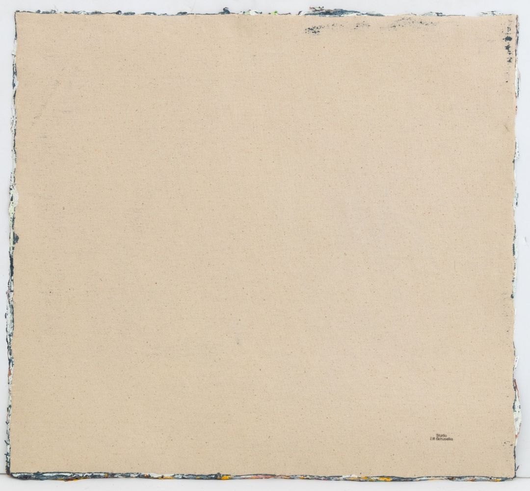 Elfi Schuselka (Austrian, b. 1940), Abstract Composition, Oil on Canvas, apparently unsigned, stamped "Studio Elfi Schuselka" to verso, unstetched, unframed. 21.5" H x 23.5" W. Provenance: From the collection of the artist. Note: Schuselka studied photography, art history, and theater at the University of Vienna. She moved to New York in 1964. Her work has been exhibited internationally in the United States, Italy, France, and Japan, as well as at the Cracovia Biennial, Yugoslavia, Ibiza Biennial, Spain, and the Sao Paulo Biennial. Her work is part of the permanent collections of the Museum of Modern Art (MoMA), New York, the Amon Carter Museum of American Art, Fort Worth, and the International Centre of Graphic Arts, Slovenia. Long a regular exhibitor at the famed 55 Mercer Gallery, Schuselka is well-known in New York art circles together with her husband, Domenick Capobianco (American, b. 1928). Keywords: Paintings, Oil Paintings, Works on Canvas, Impasto, Texture, Abstraction, Polychrome, Geometric, Patterns, Abstract Expressionist, Expressionism, AbEx, Women Artists, Contemporary Art