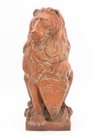 Italian Seated Lion Terracotta Sculpture, a shield beneath his left paw.