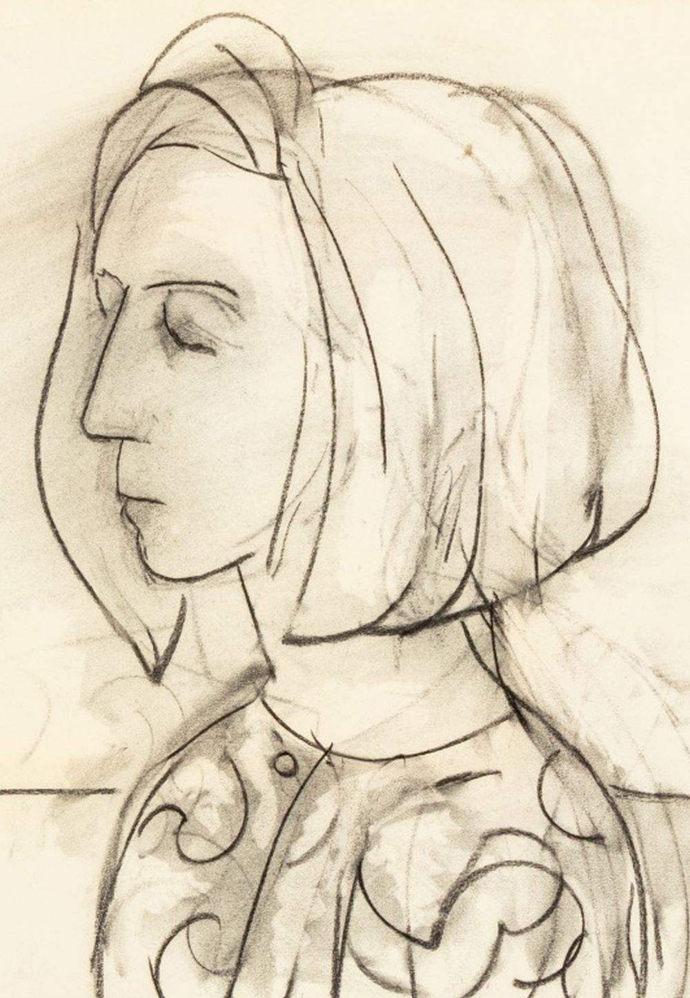 Manfred Schwartz Portrait of Anne Sager Charcoal