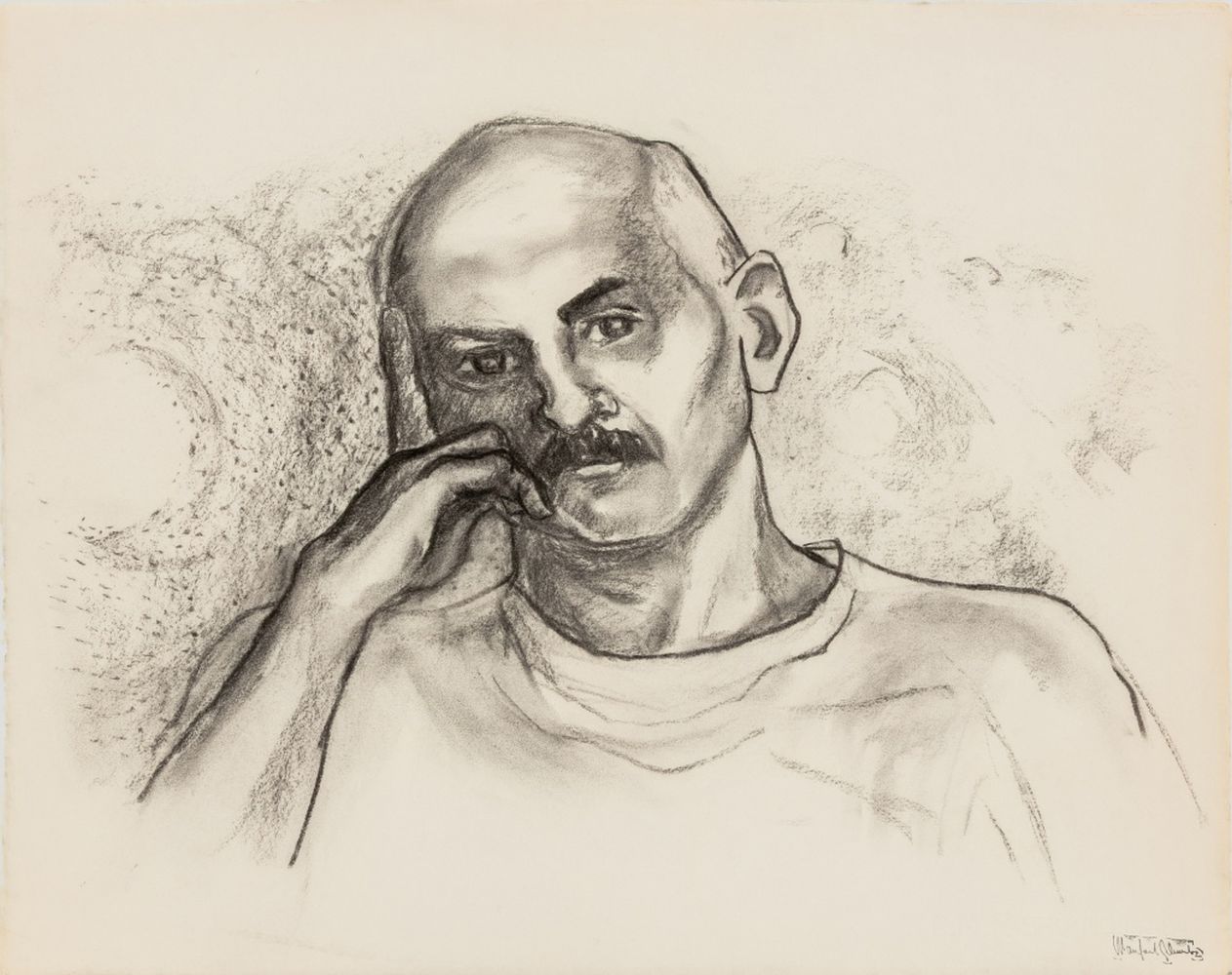 Manfred Schwartz (American, b. Poland, 1909-1970), Portrait of a Bald Man, Charcoal on Paper, with the artist's signature stamped lower left, unframed. 19" H x 24" W. Provenance: From a 35 East 75th Street Estate. Keywords: Drawing, Works on Paper, Portraiture, Model study, Male Figure, Figural, Figurative, Provincetown, P-town Artist, Post-War Art