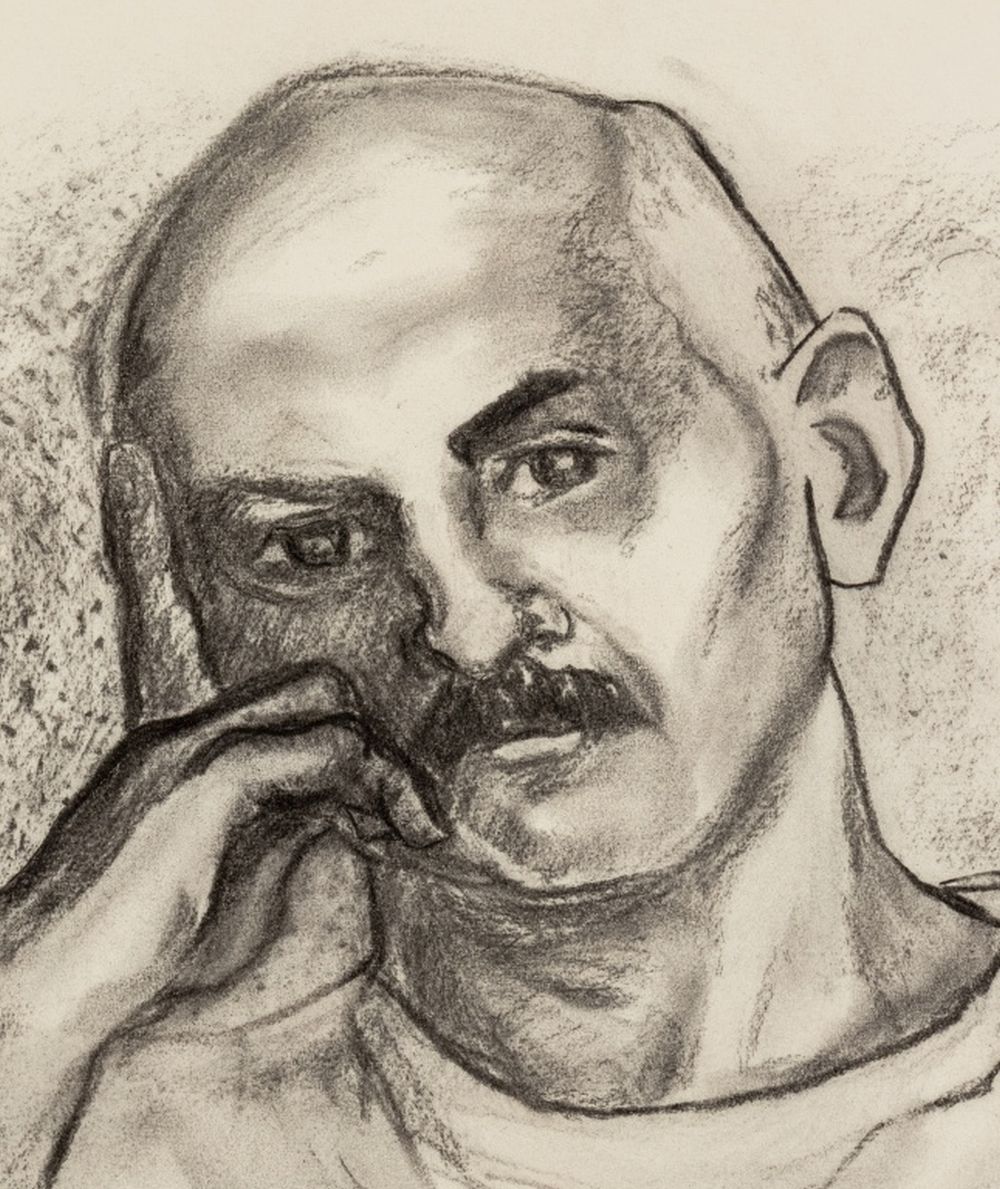 Manfred Schwartz Portrait of Man Charcoal on Paper