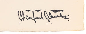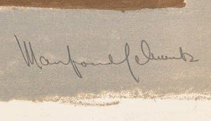 Manfred Schwartz (American, b. Poland, 1909-1970), "Somber Planet", Lithograph on Paper, mid 20th century, signed in pencil and with the artist's signature stamped lower right, unframed. Image 18.5" H x 25" W; sheet: 21.5" H x 28.25" W. Provenance: From a 35 East 75th Street Estate. Keywords: Prints, Multiples, Abstract Composition, Abstraction, Geometric, Rising Sun, Earth Tones, Polychrome, Provincetown, P-town Artist, Post-War Art