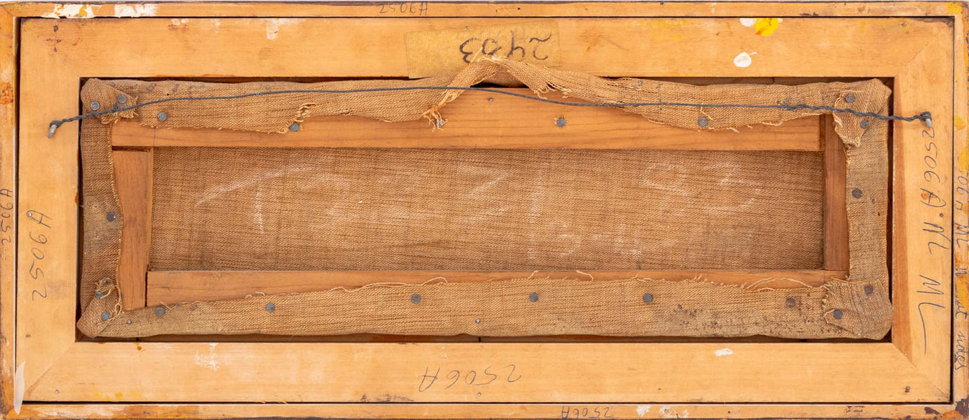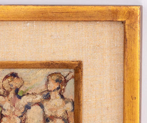 Neoclassical Figural Scene, Oil on Canvas, depicting a line of nude figures, two women and two winged men to center, possibly depicting the marriage of Castor and Pollux to the Leucippides, apparently unsigned, giltwood frame.