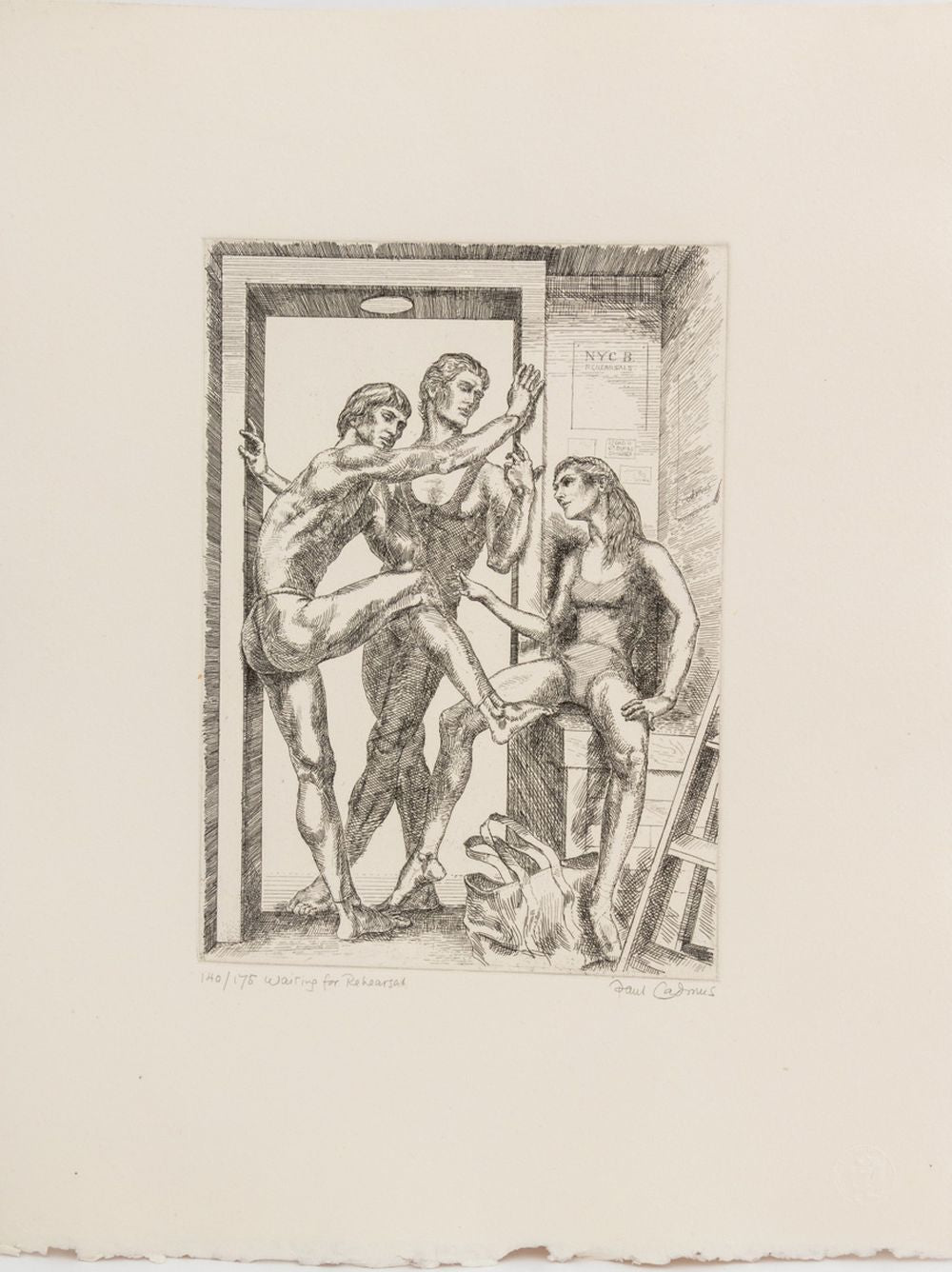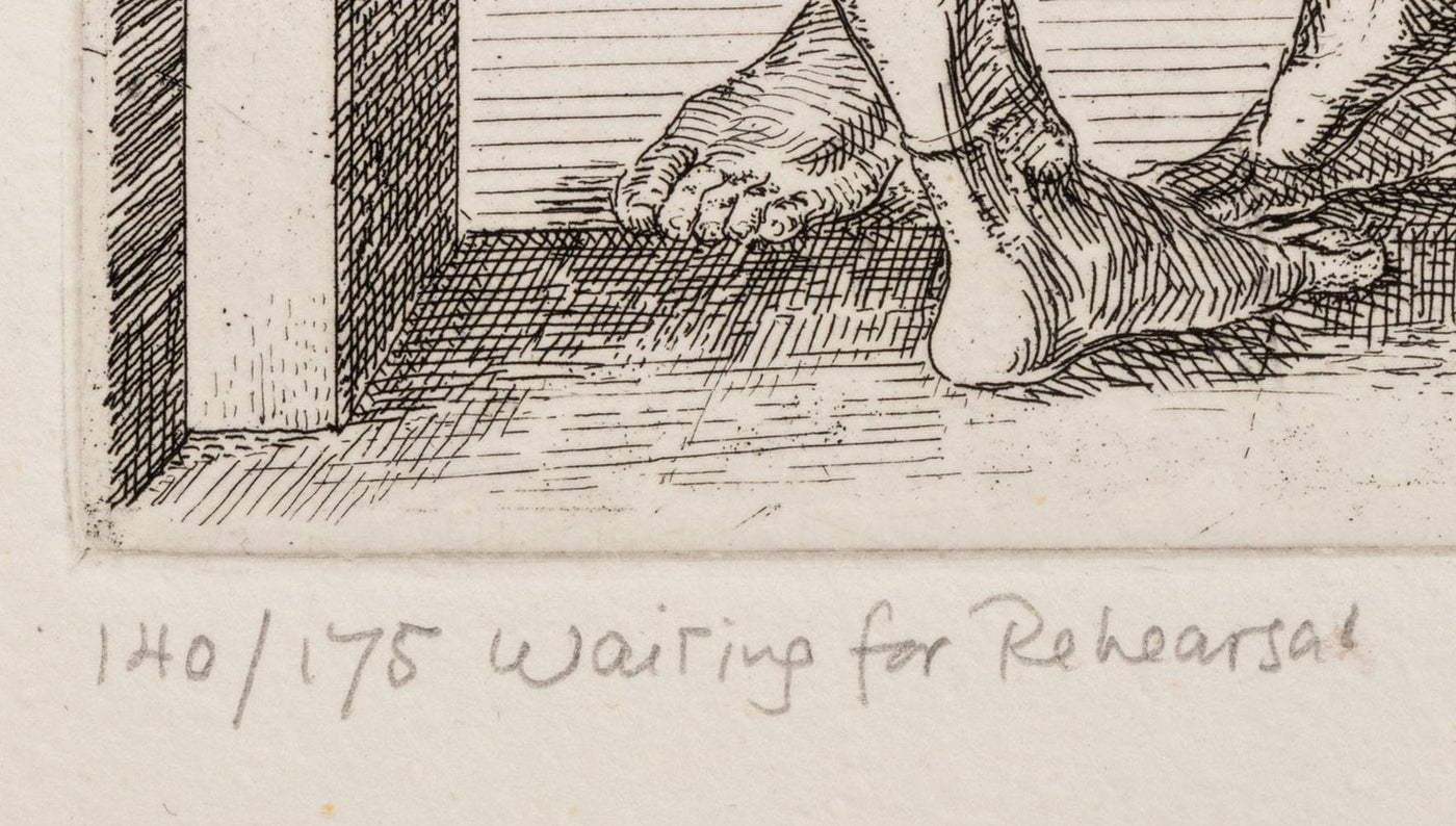 Paul Cadmus (American, 1904-1999), "Waiting for Rehearsal", Etching, 1984, signed in pencil lower right, titled and numbered edition "140/175" lower left, and blind stamped "Pelavin Printmaker" lower right, unframed.