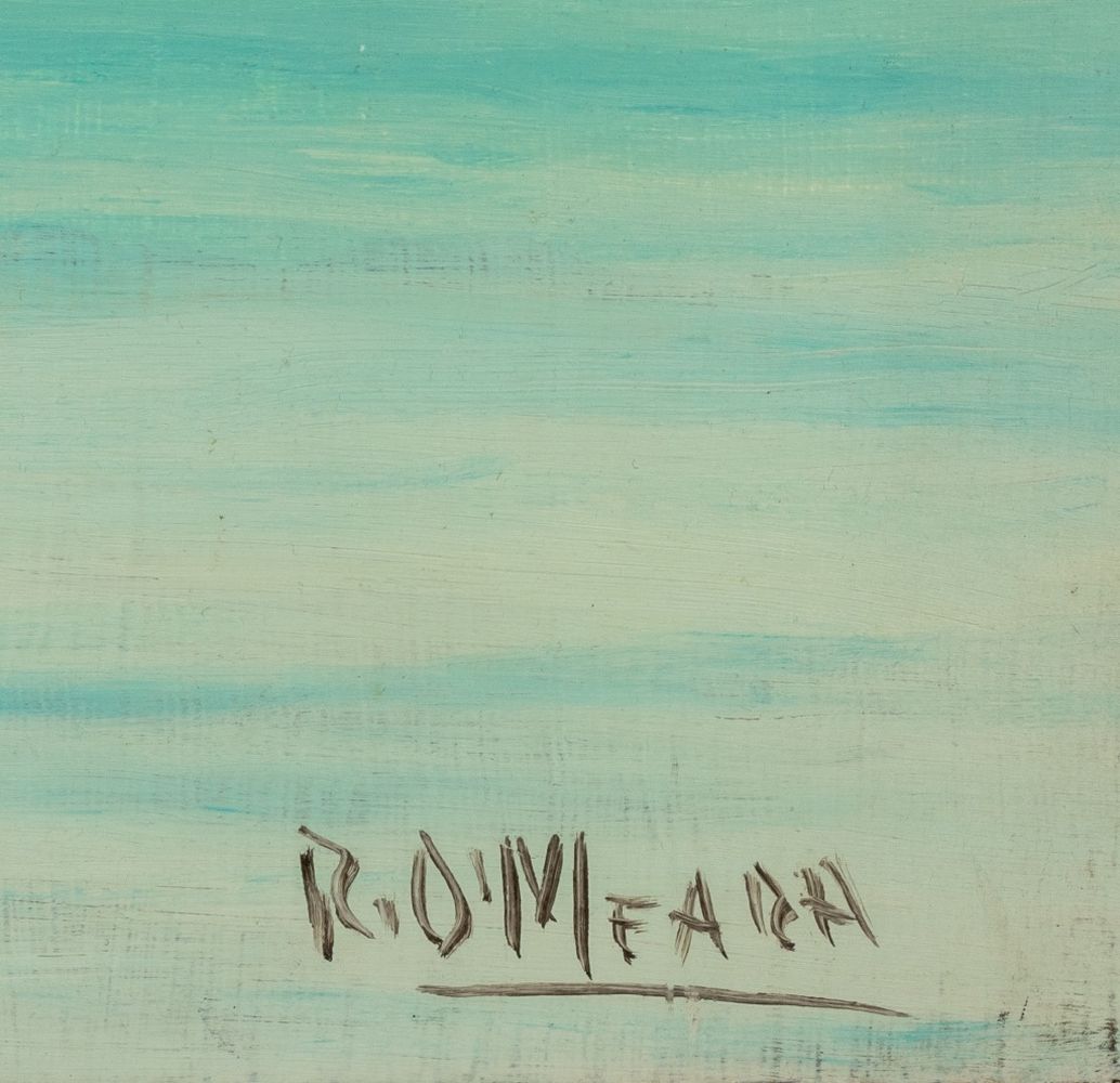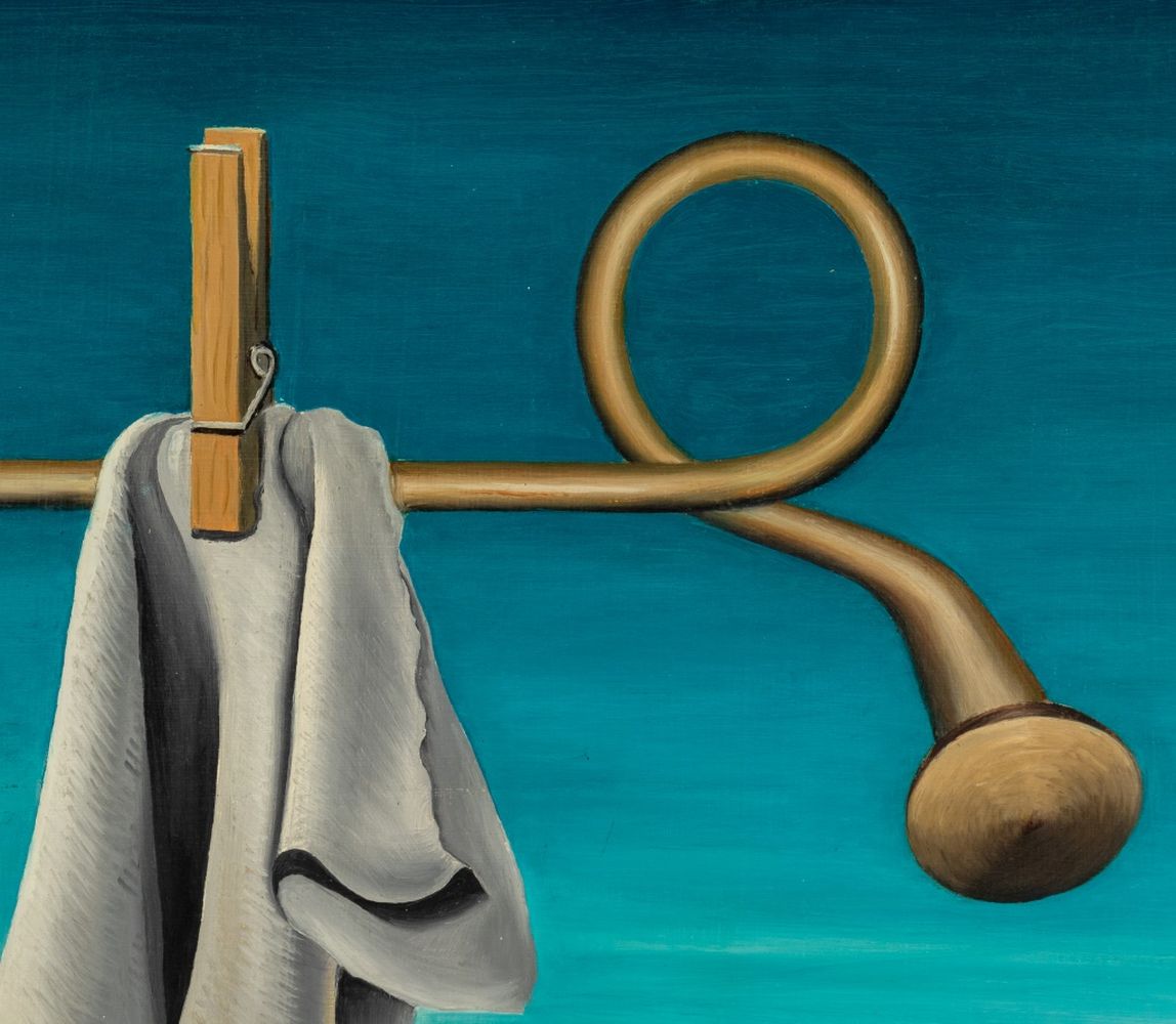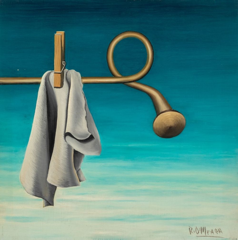 Robert O'Meara Surrealist Clothesline Oil on Board