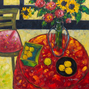 S. Montey Still Life of Bouquet and Fruit Acrylic