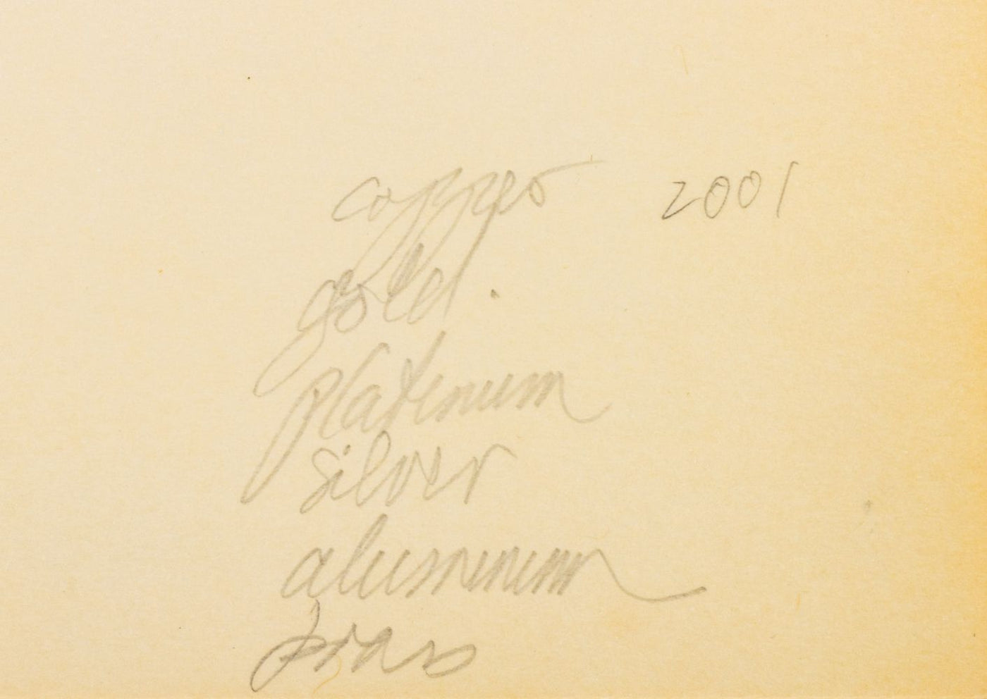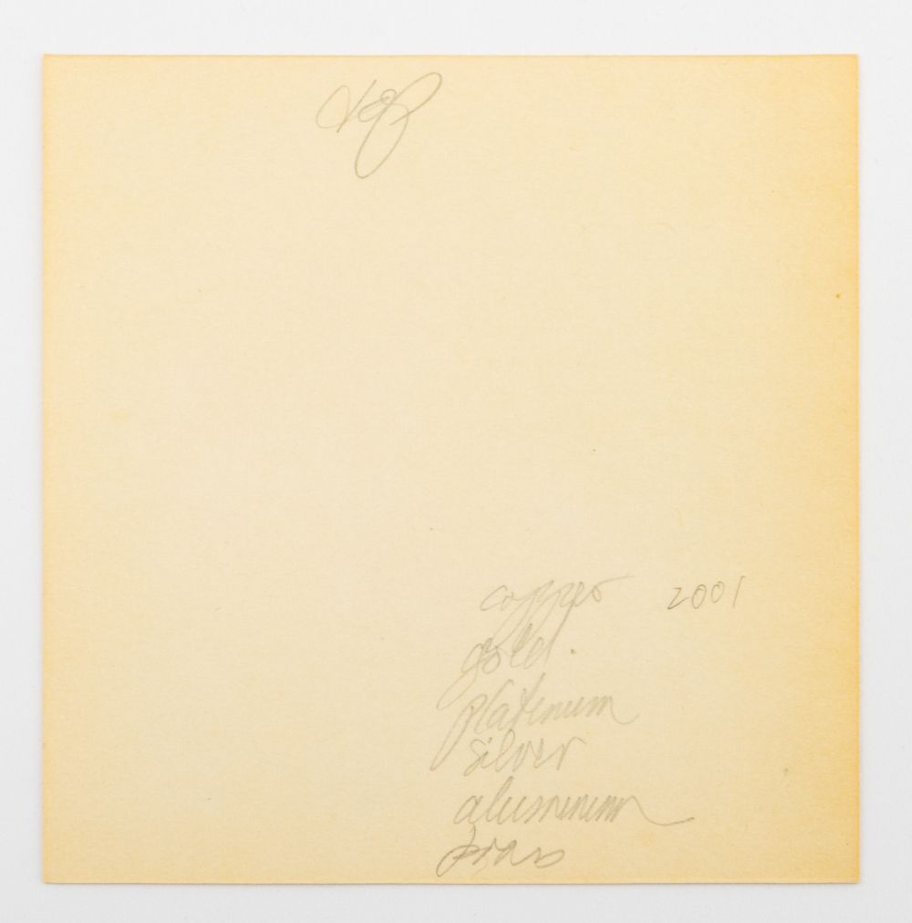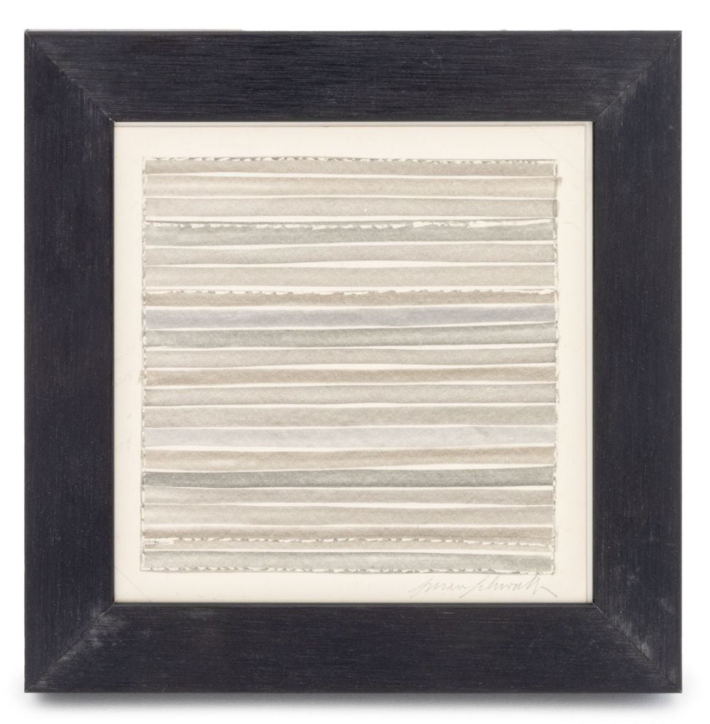Susan Schwalb (American, b. 1944), Lines Composition, Copper, Gold, Platinum, Aluminum, Brass and Silverpoint on Clay Coated Paper, 2001, signed in pencil lower right, ebonized faux wood metal frame.