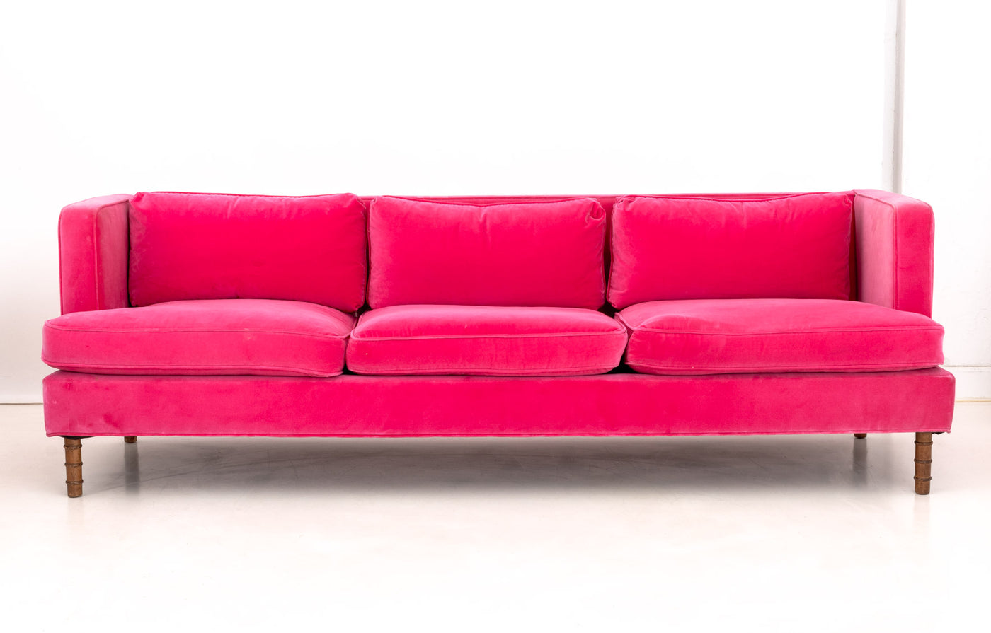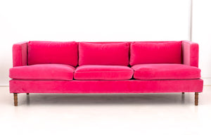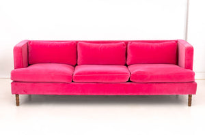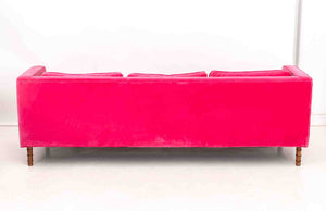 Contemporary Hot Pink Velvet Upholstered Sofa