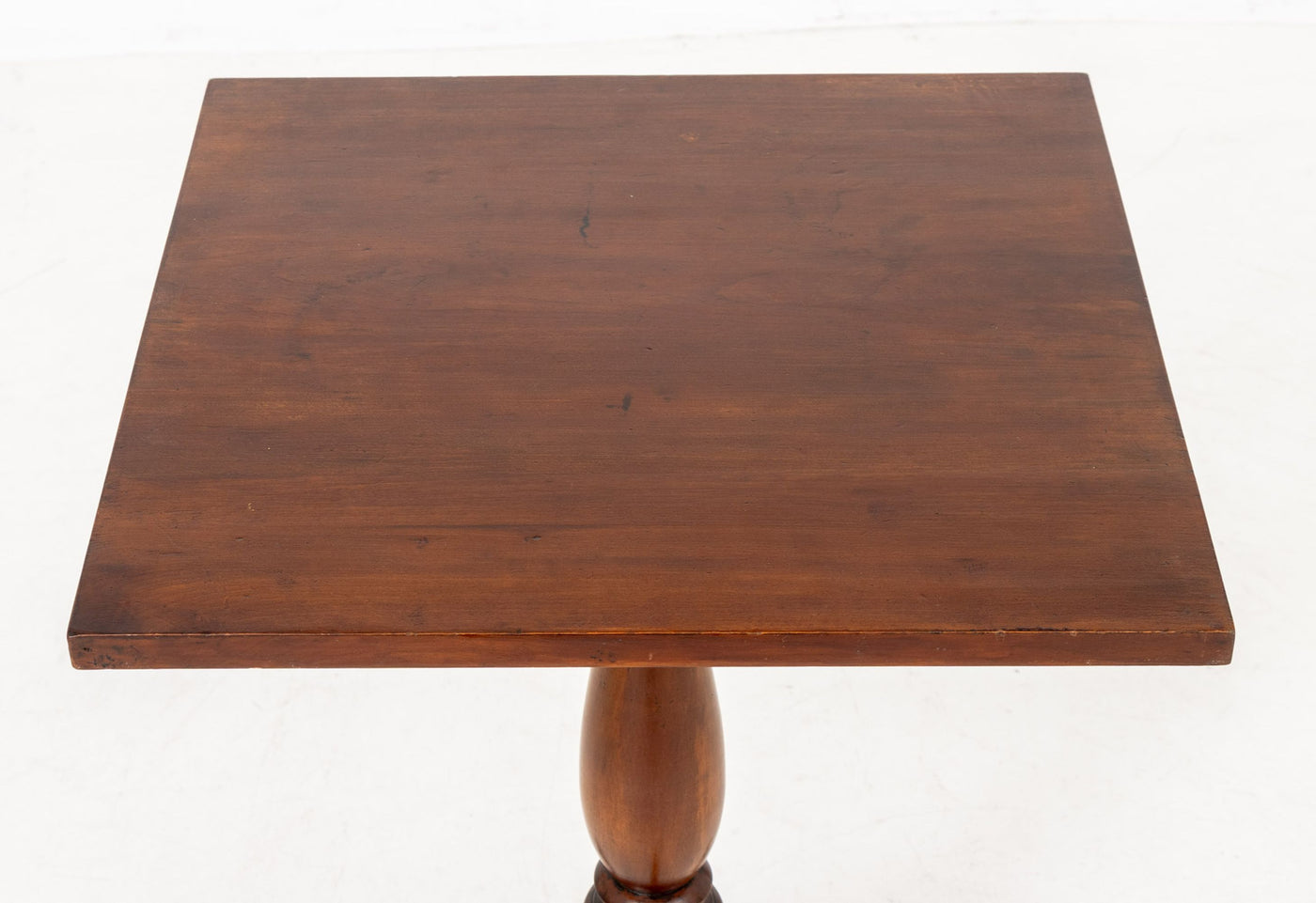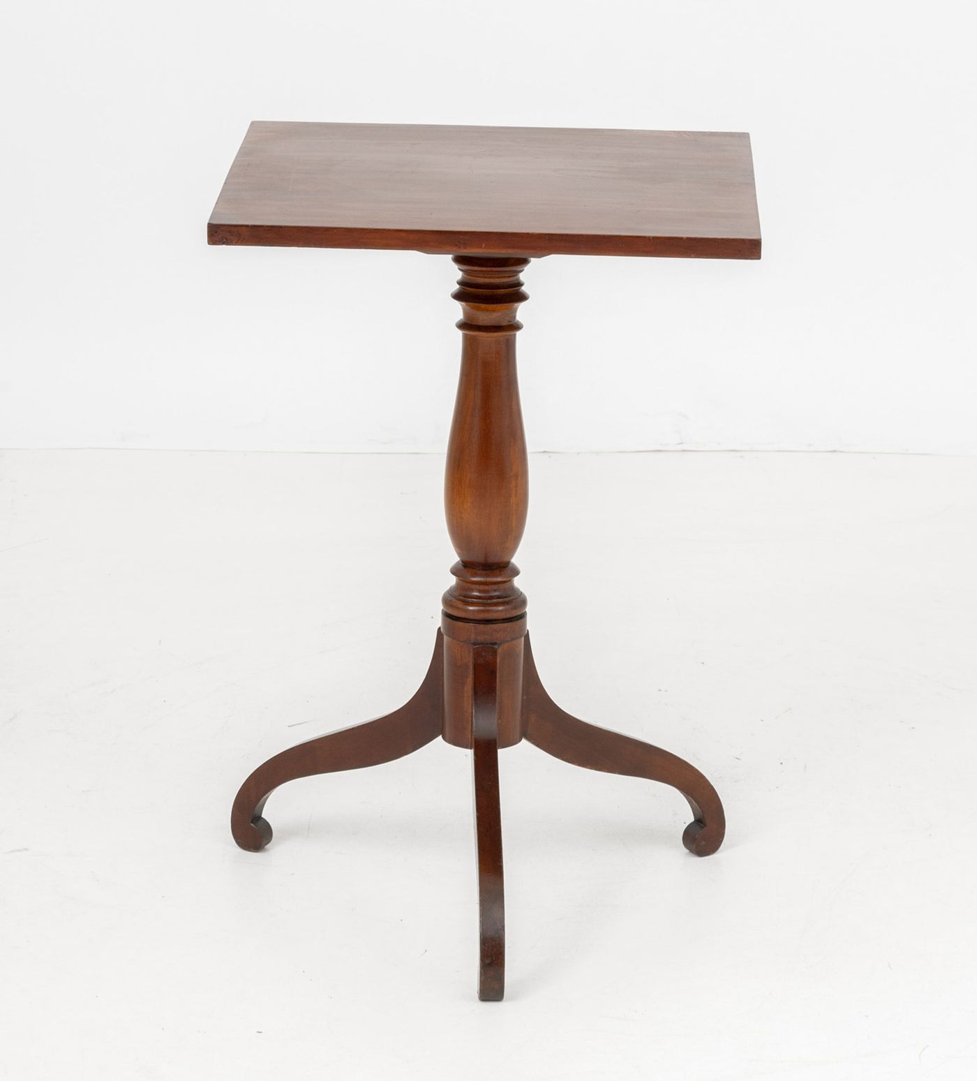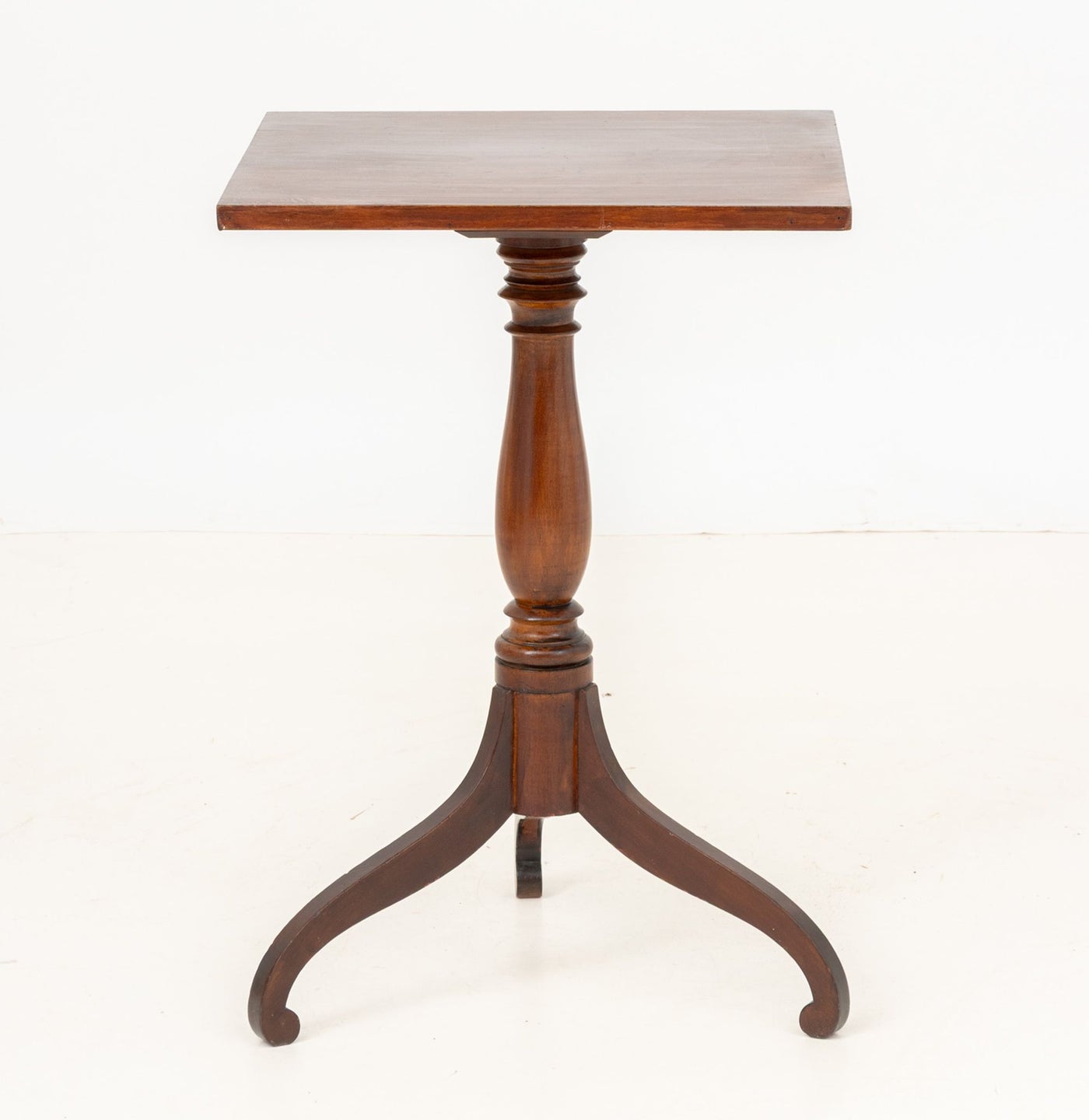 Federal Mahogany Lamp Table, the square top above turned wood stem terminating in three legs.