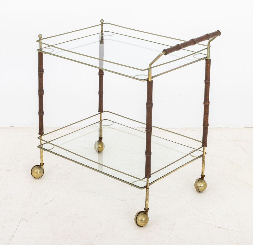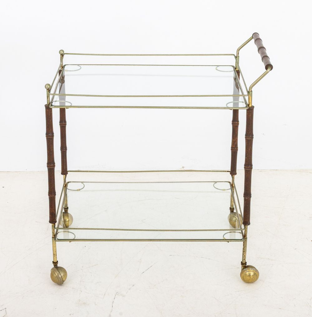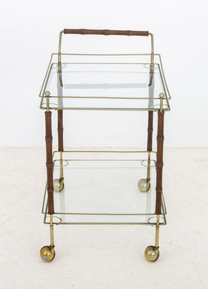 French Modern Two-Tier Brass and Walnut Bar Cart