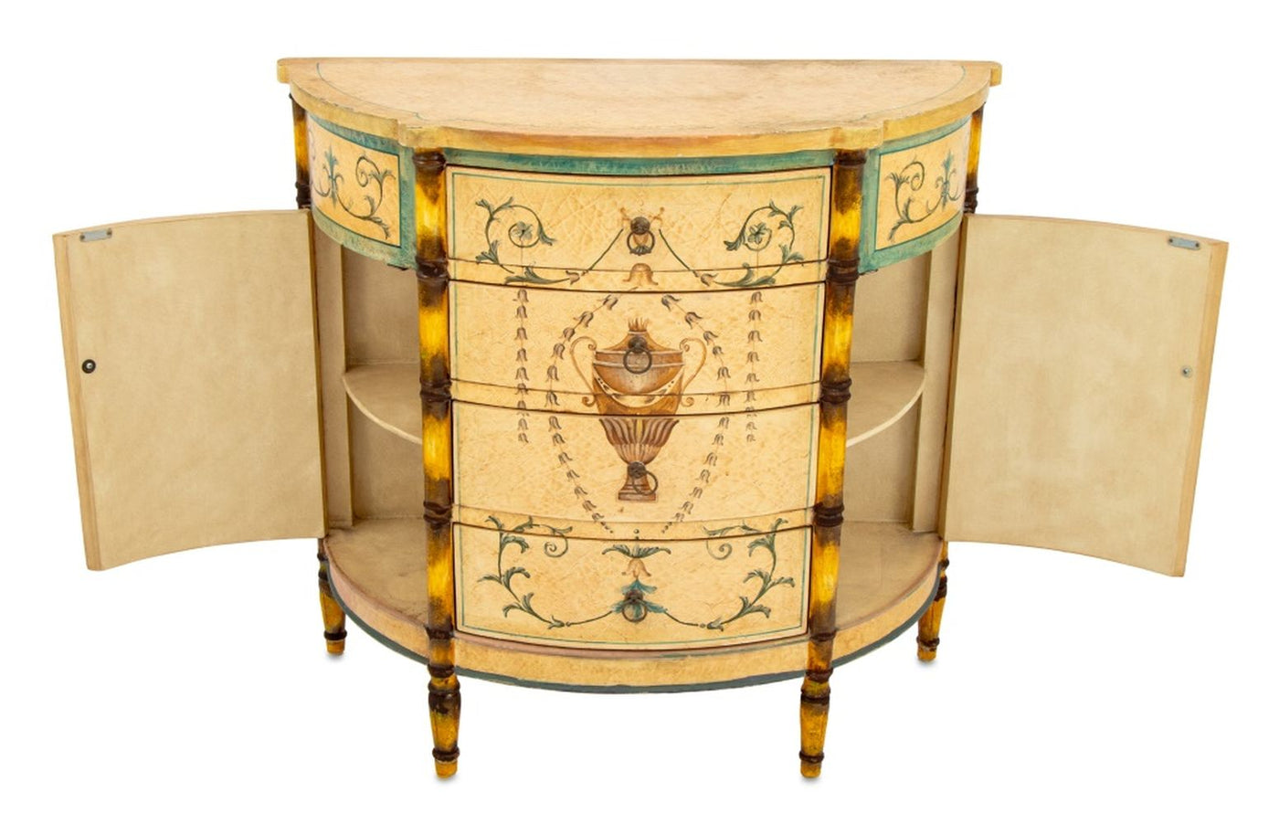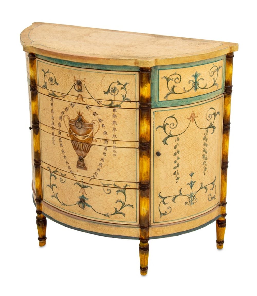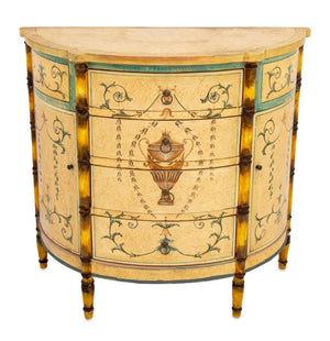 Italian Paint Decorated Demilune Cabinet