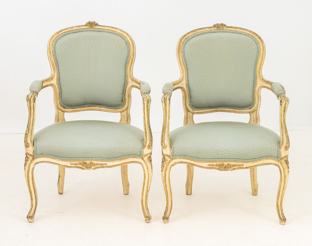 Louis XV Style Painted Fauteuils, Pair