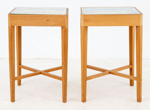Mexican Ceramic Dish Inset Side Tables, Pair