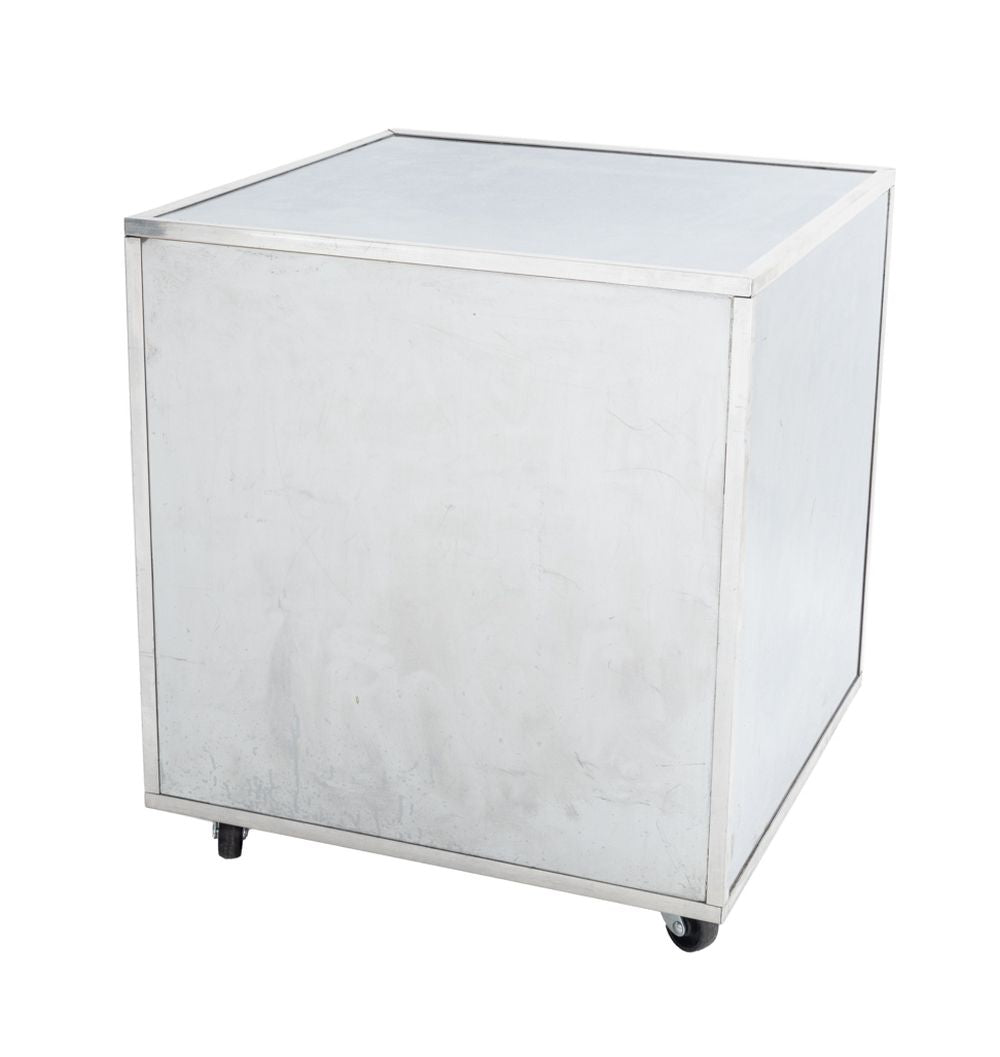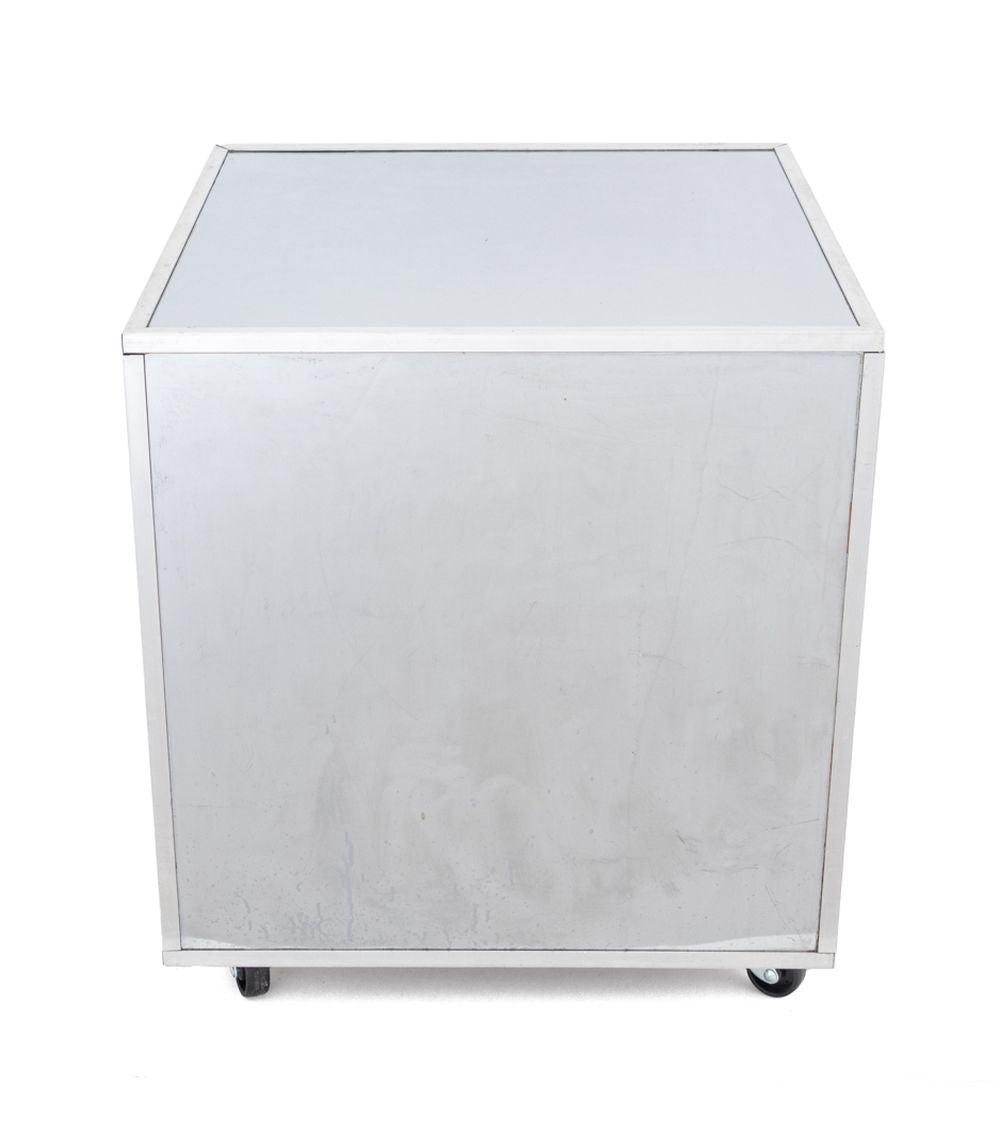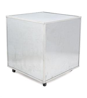 Mirrored Cube Rolling Side Table, on four casters. 20" H x 18" W x 18" D. Provenance: From a New York City Collection. Keywords: Vintage Furniture, Accent table, Mid-Century Modern, MCM, Retro, Decorative Arts