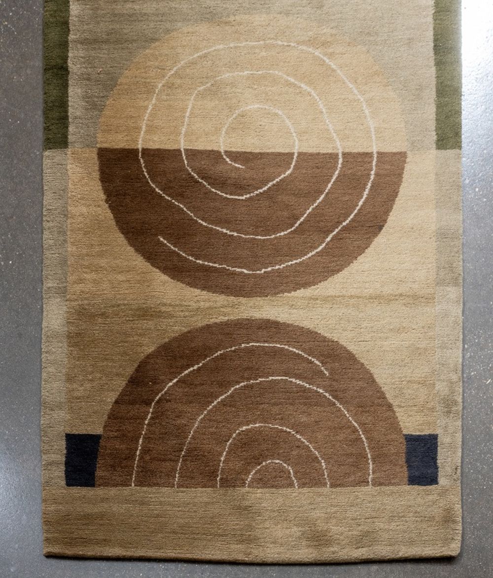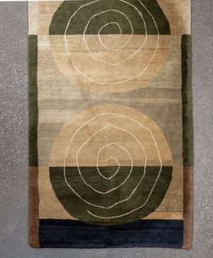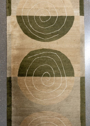 Modern Wool Pile Green Runner, 11' 8" x 3' 1"