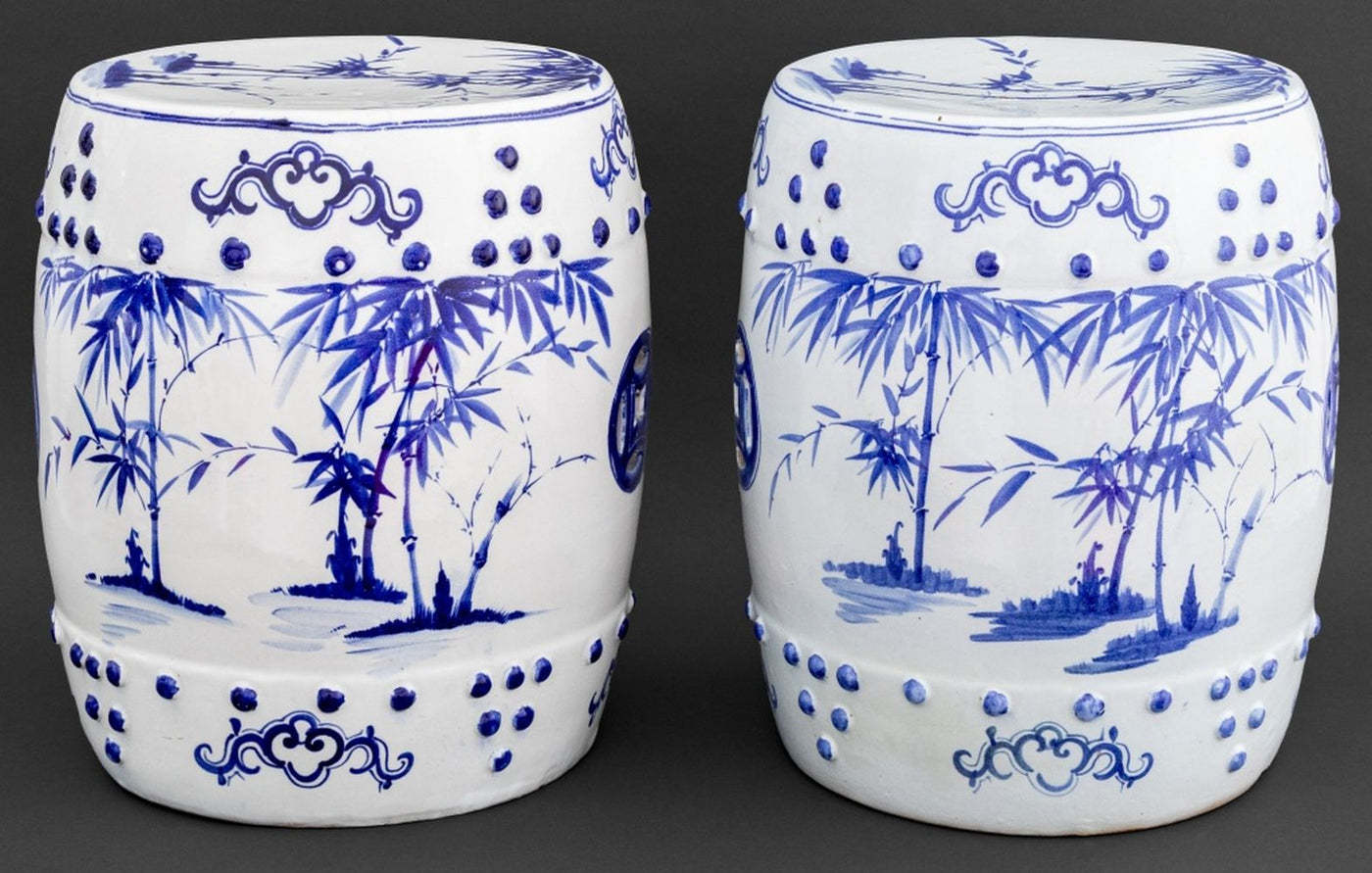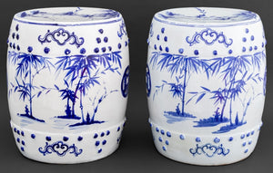 Thai Chinese Style Blue & White Ceramic Stools, 2