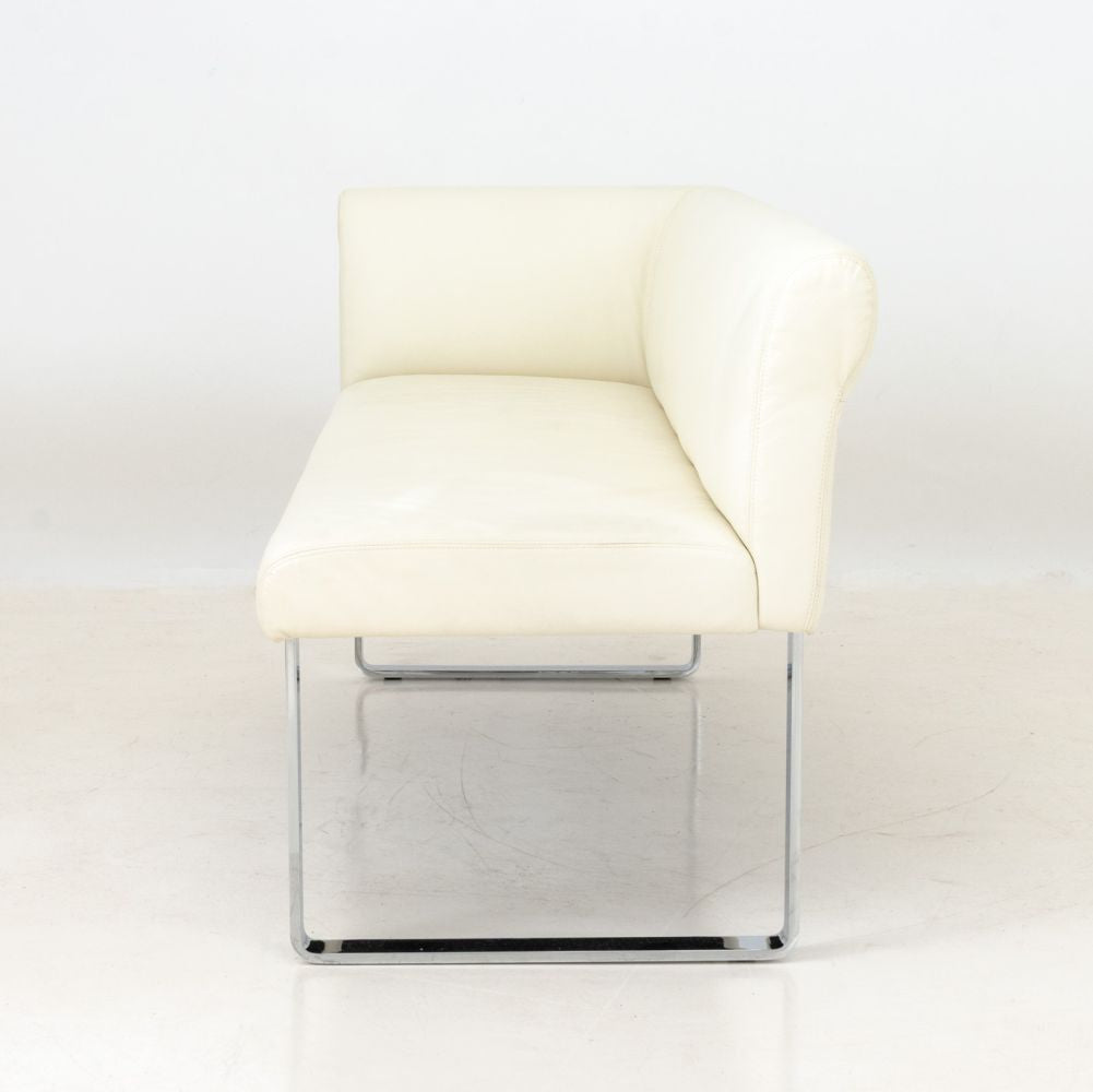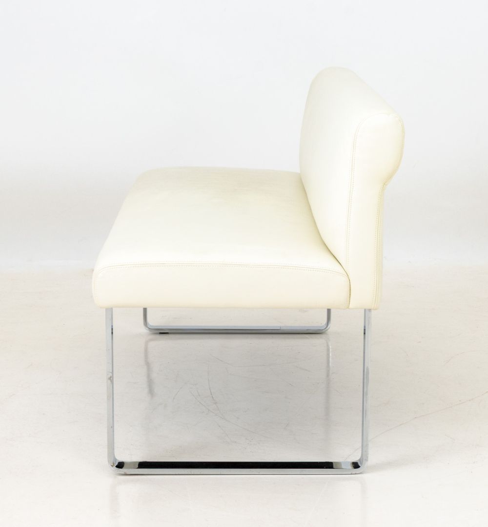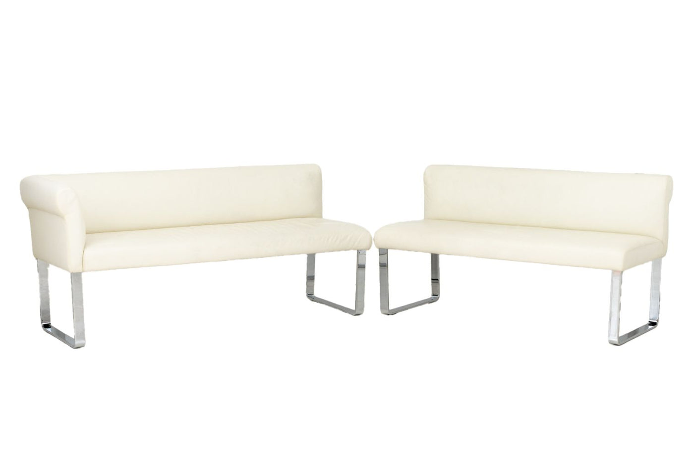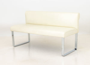 White Leather Upholstered Chrome Banquettes, Pair