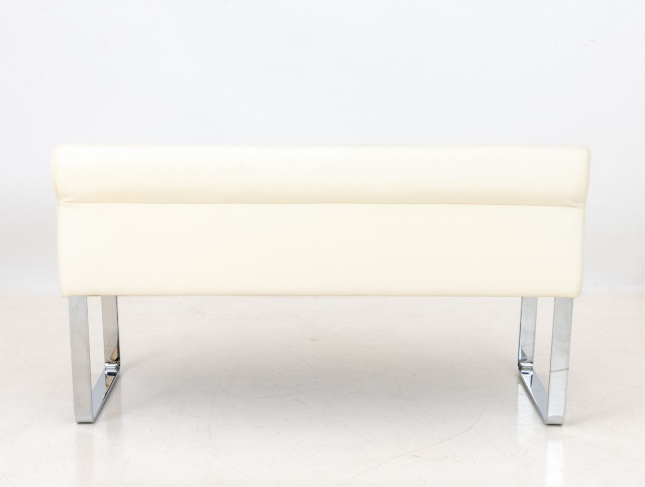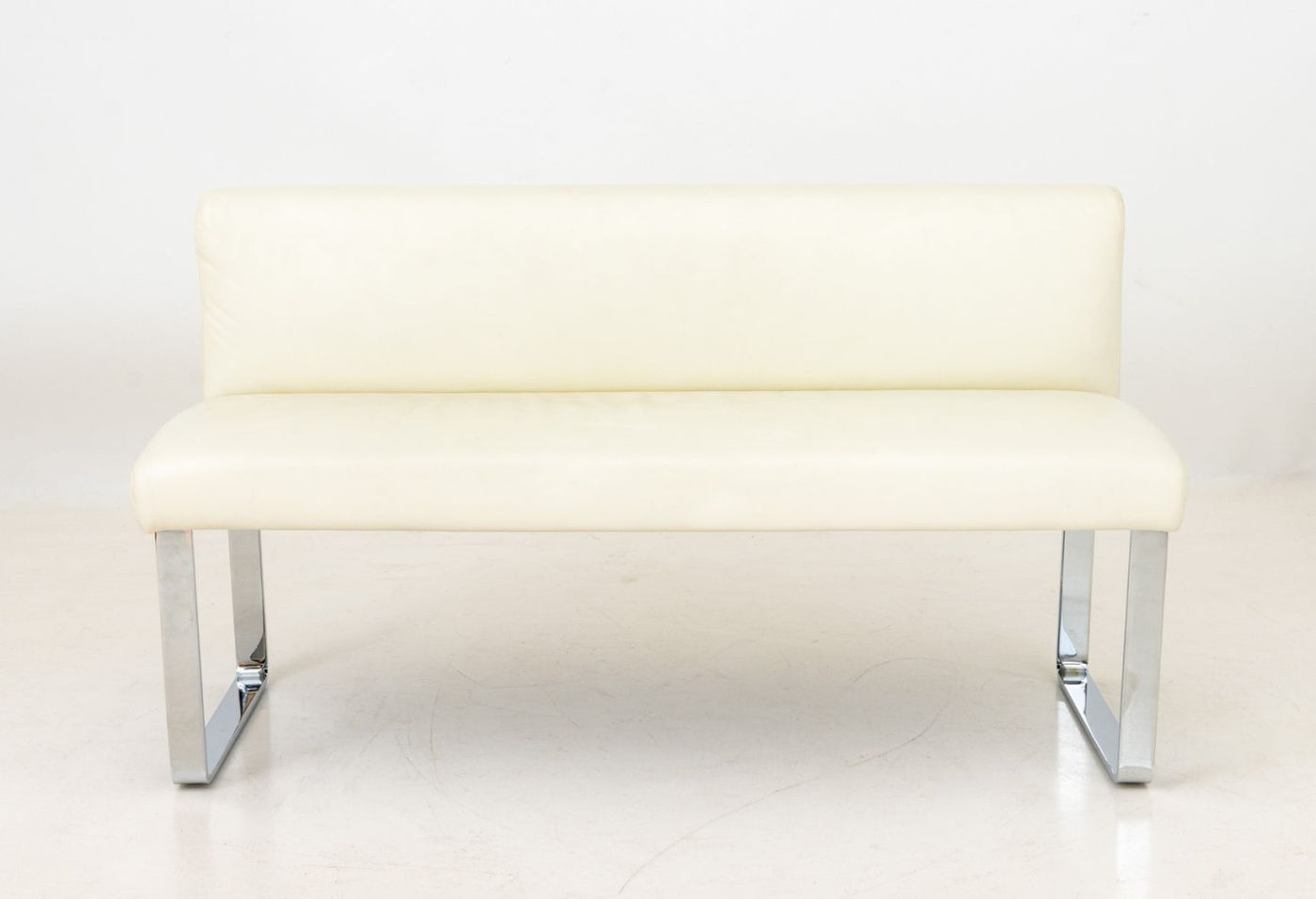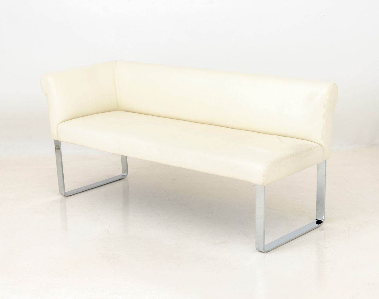 White Leather Upholstered Chrome Banquettes, Pair