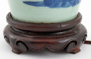 Chinese Blue & White Porcelain Vase Mounted Lamp