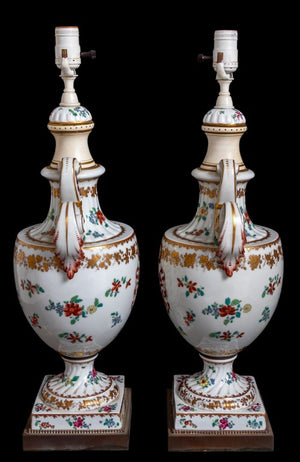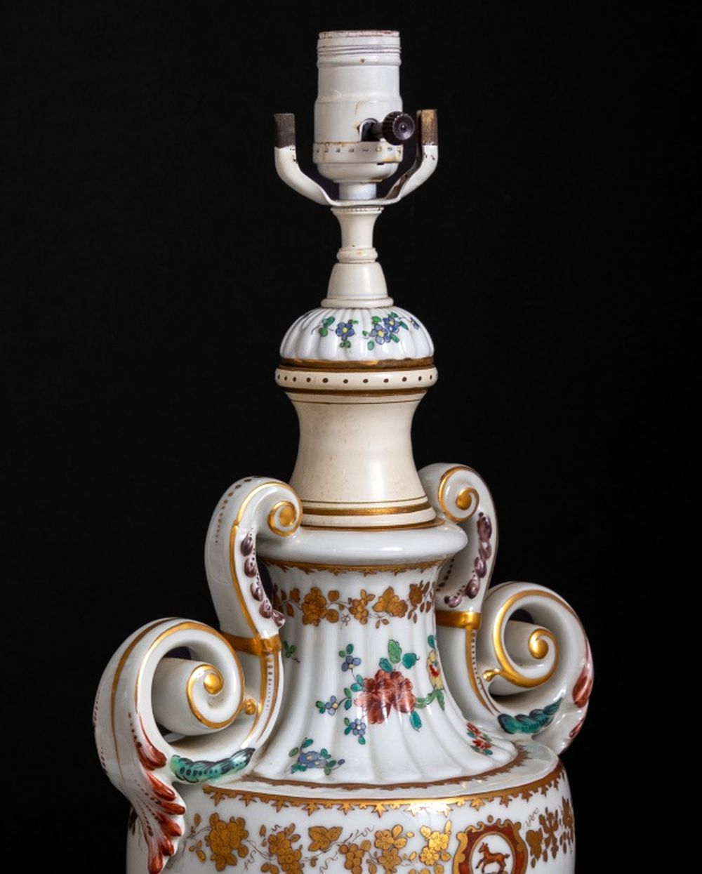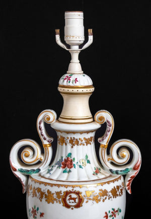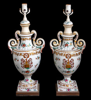 Chinese Export Style Armorial Porcelain Lamps, Pr