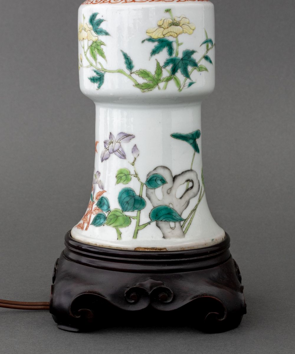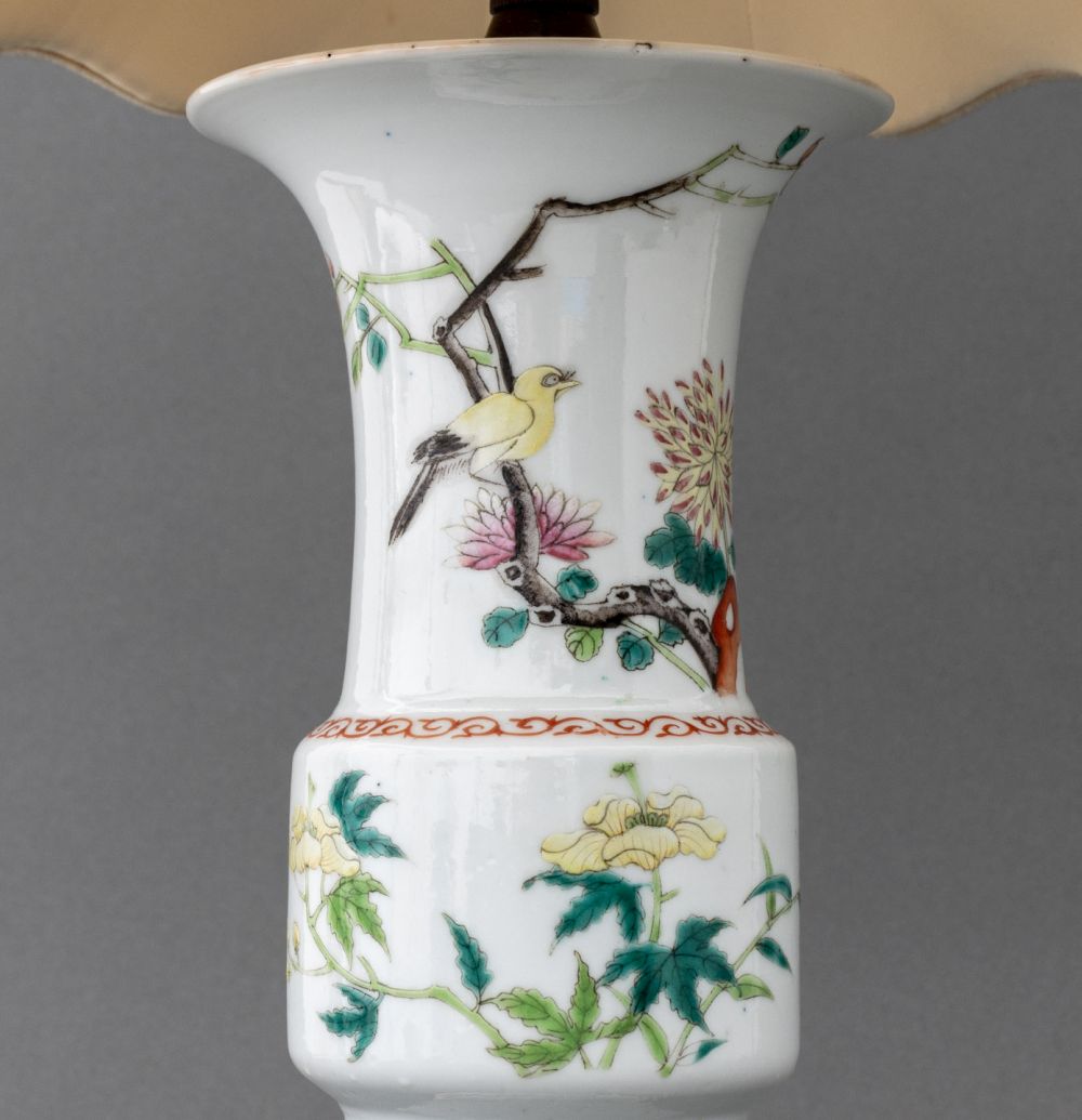 Chinese Famille Rose Gu Vase Mounted as a Lamp