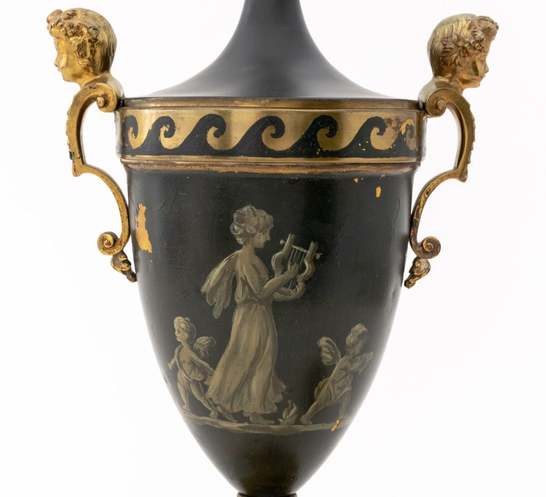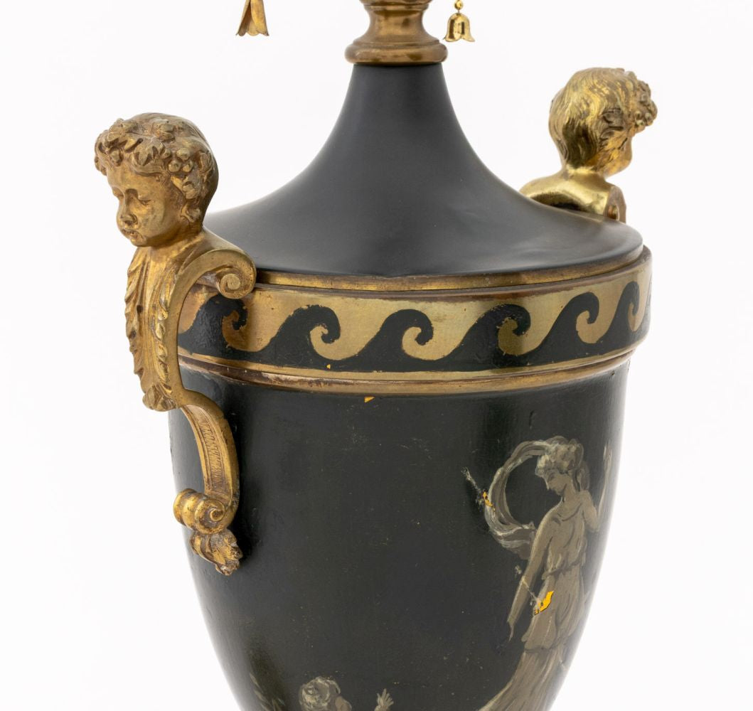French Empire Style Painted Gilt Metal Table Lamp