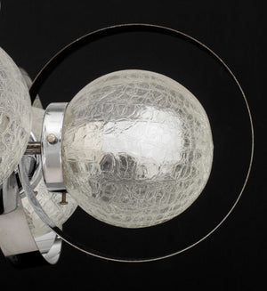 Italian Modern Chrome Ring Chandelier, four crackle glass globe lights, affixed to a central shaft, circa 1970s. 17" H x 21.5" Diameter. Provenance: From a New York City Collection. Keywords: Designer Lighting, Pendant lamp, Light, Home Decor, Mid-Century Modern, Design, Sciolari style, Decorative Arts