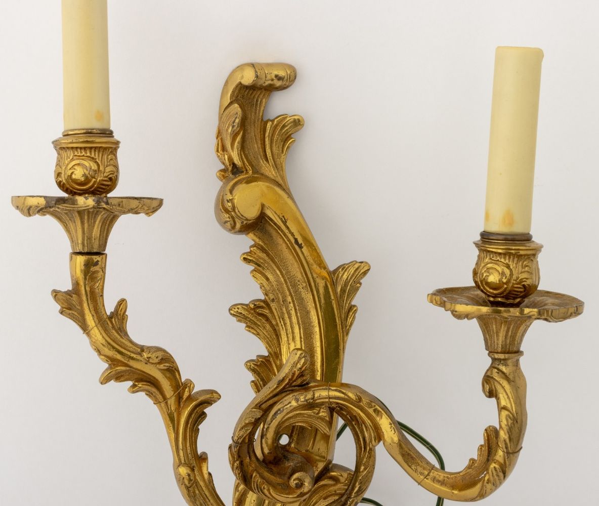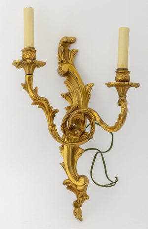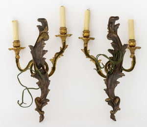 Louis XV Style Gilt Metal Two-Light Sconces, Pair