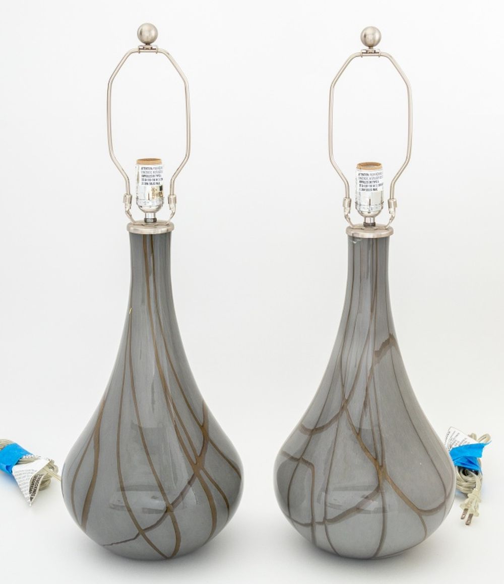 Modern Gray Glass Tear Drop Vases as Lamps, Pair
