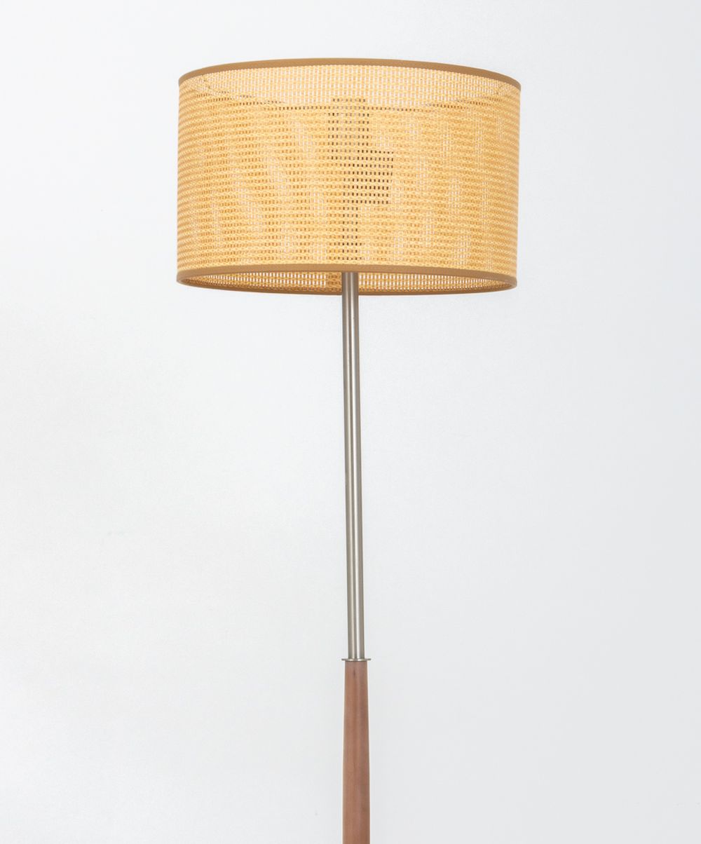Penta Cherrywood and Woven Straw Floor Lamp