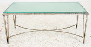 Hollywood Regency Silvered Metal & Glass Low Table