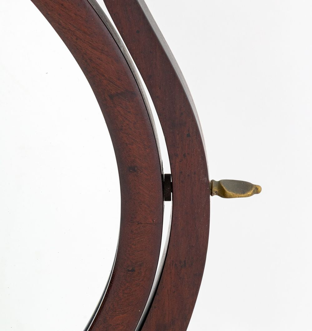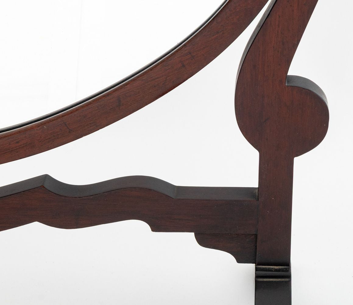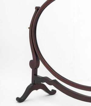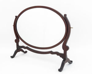 Edwardian Mahogany Dressing Table Mirror, early 20th century, oval mirror plate. 22.5" H x 29.5" W x 10.25" D. Provenance: From an Upper West Side, New York City Estate. Keywords: Vanity, Antique mirrors, Tilt, Swivel, Looking Glass, Boudoir, Interior design, Decorative Arts