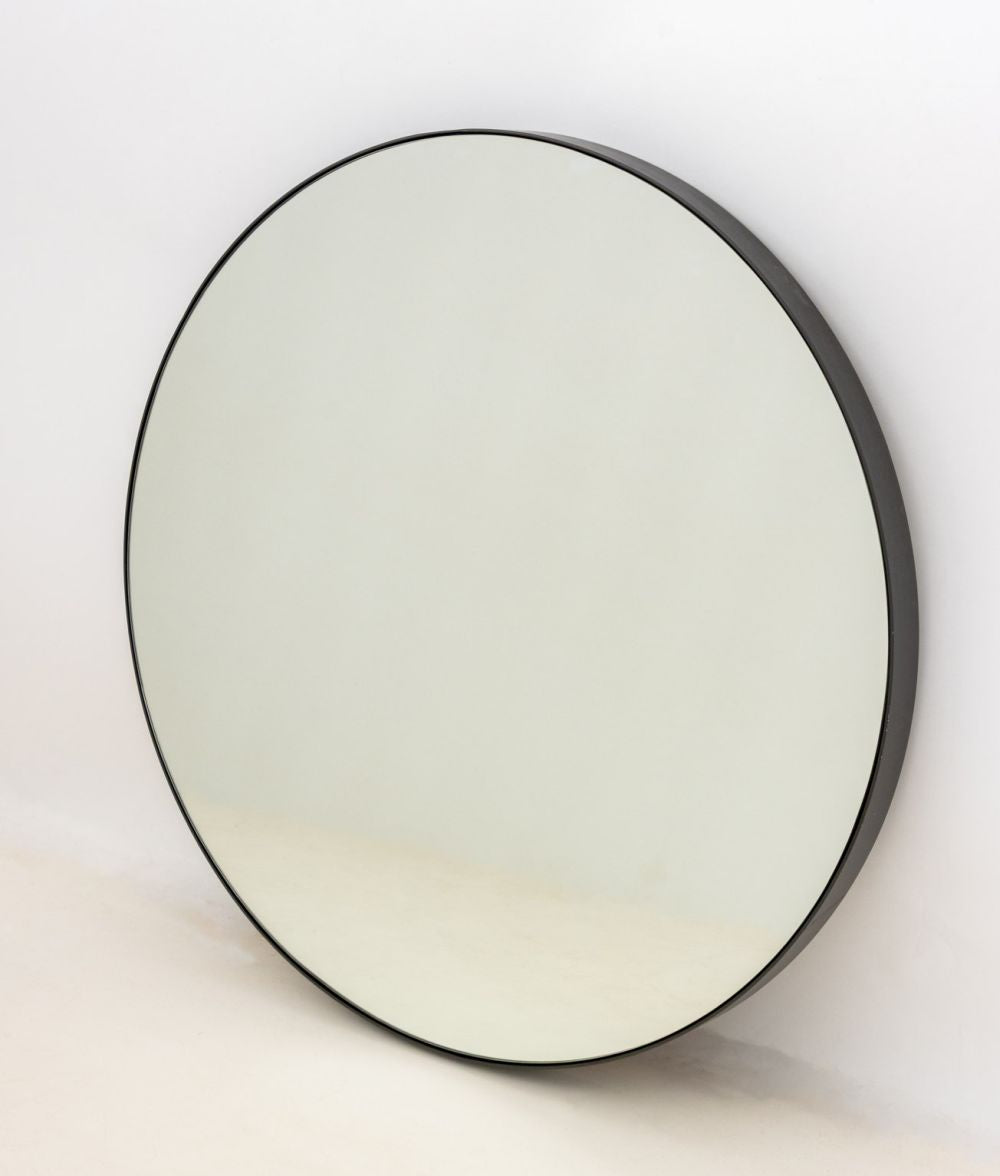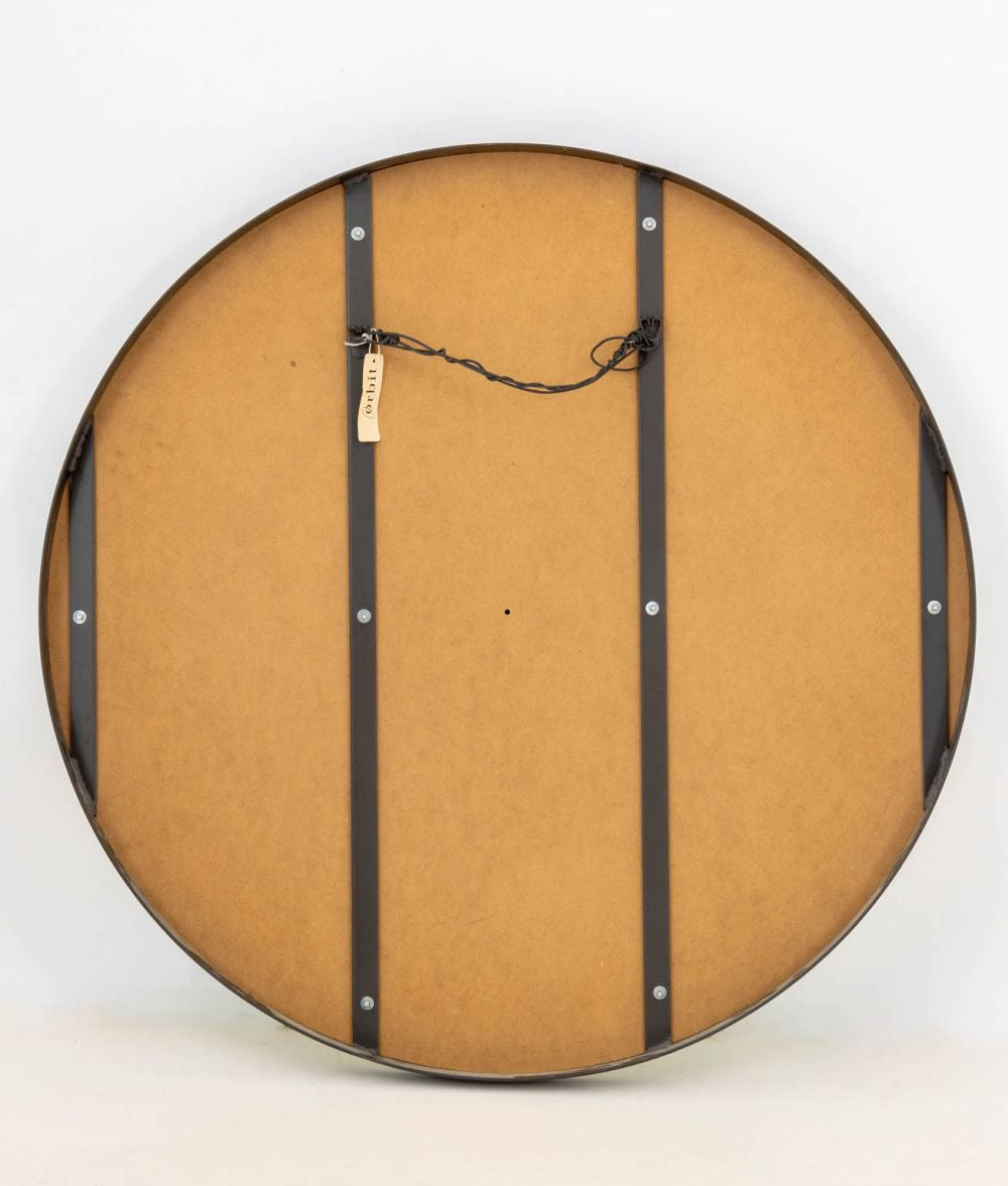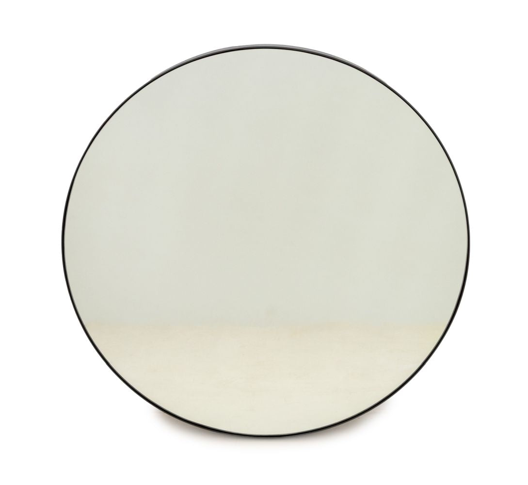 Minimalist Circular Wall Mirror, with bronzed iron frame.