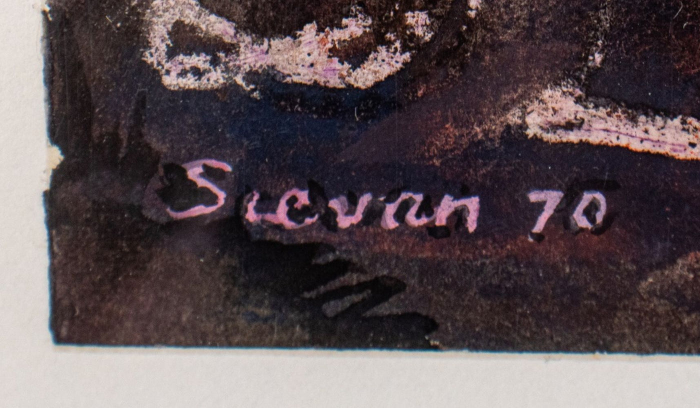 Maurice Sievan (American, 1898-1981), Untitled, Mixed Media on Paper, 1970, crayon and watercolor, signed and dated "'70" to lower left and inscribed to verso, in a white mat, unframed. Image: 3" H x 5" W; frame: 14" H x 11" W. Provenance: Acquired directly from the family of the artist. Property from the estate of a New York Real Estate Agent. Keywords: Painting, Watercolour, Works on Paper, Abstraction, Abstract Composition, 20th Century Art, Post-War and Contemporary Art