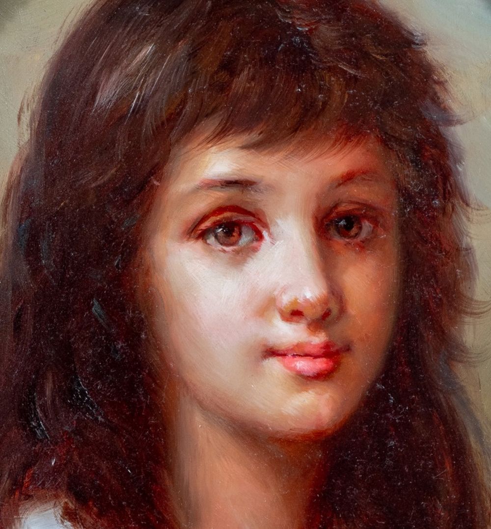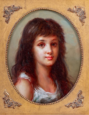 American School Portrait of a Girl Oil on Panel