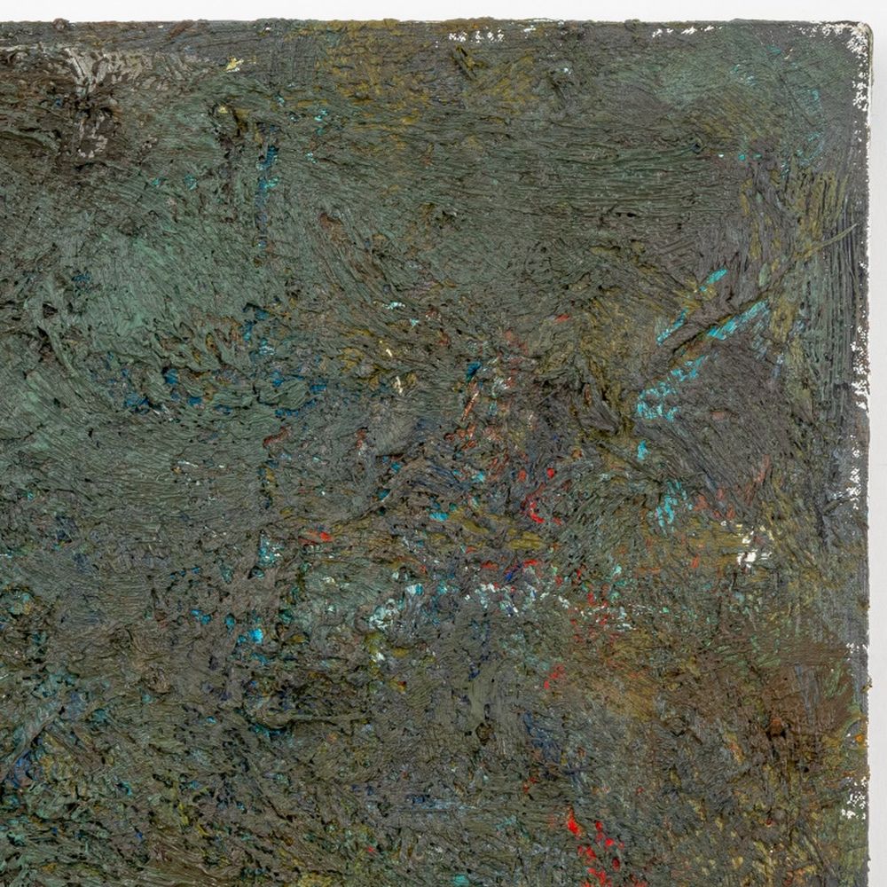 Andy Miller (American, b. 1950), Abstract Composition, Oil on Canvas, impasto details, deep pine green with blue undertones, with artist's studio stamp to verso, apparently unsigned, unframed. 60" H x 54" W. Provenance: From the Studio of Andy Miller. Keywords: Painting, Abstraction,  Abstract Expressionist, Abstract Expressionism, AbEx, Post War and Contemporary Art, Polychrome, 20th Century School, Circle of Milton Resnick and Pat Passlof