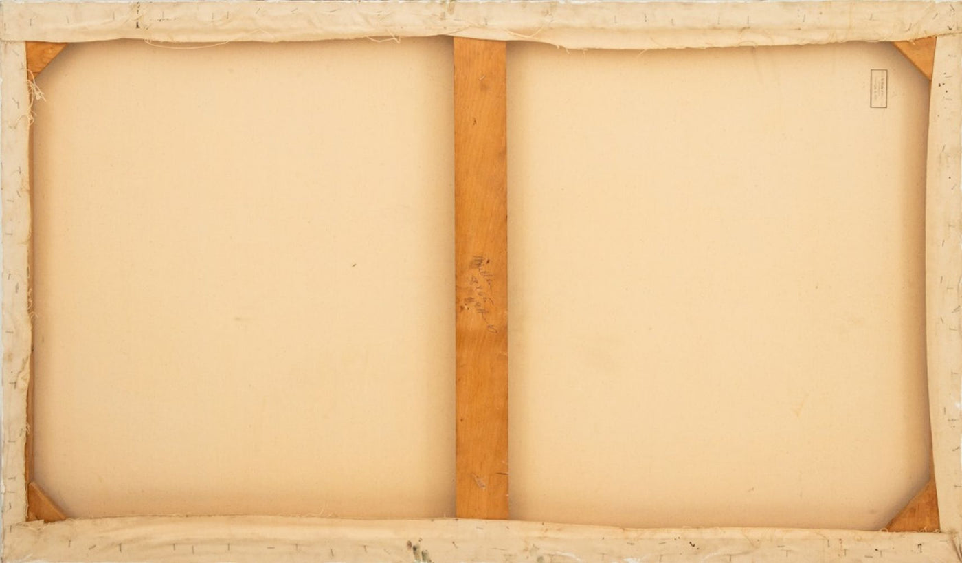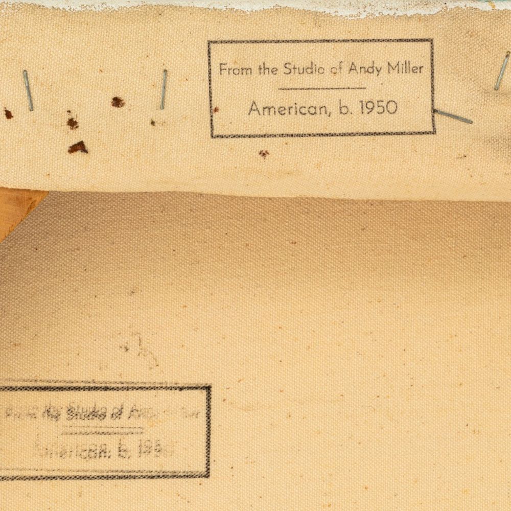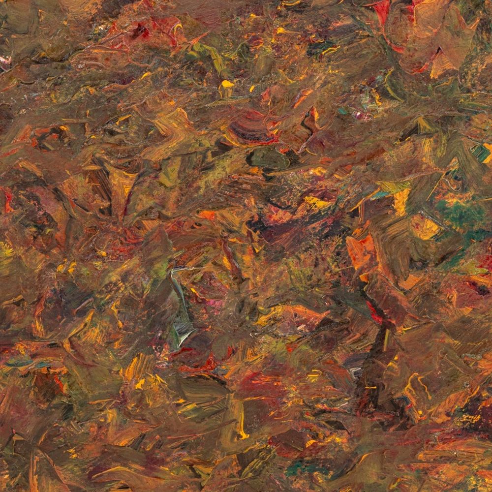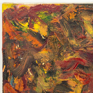 Andy Miller (American, b. 1950), Abstract Composition, Oil on Canvas, impasto details, warm reds and yellows over green, with artist's studio stamp and signed to verso, unframed. 38" H x 65" W. Provenance: From the Studio of Andy Miller. Keywords: Painting, Abstraction,  Abstract Expressionist, Abstract Expressionism, AbEx, Post War and Contemporary Art, Polychrome, 20th Century School, Circle of Milton Resnick and Pat Passlof