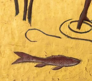 Art Deco Heron Scene Painted and Carved Wood Panel
